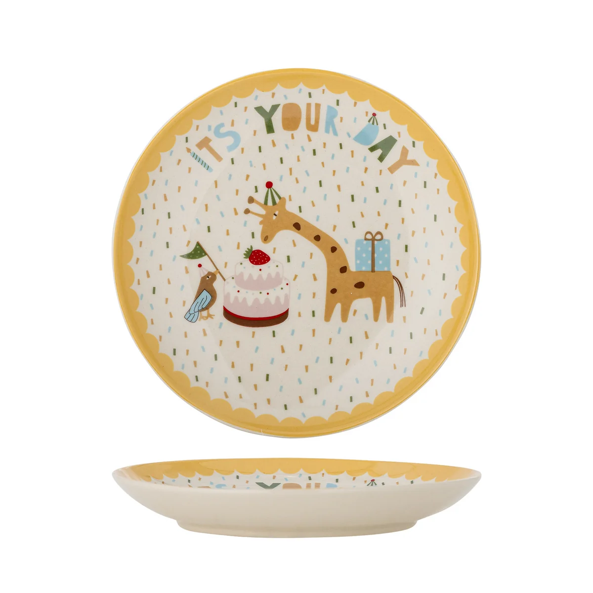 The Celebrate plate from Bloomingville MINI is made of glazed stoneware and delights with its wavy edge and cheerful, bright colors. Perfect for children's birthday parties or a lovingly laid table in everyday life. The handmade glaze makes each plate unique with individual color variations - which makes it particularly charming.