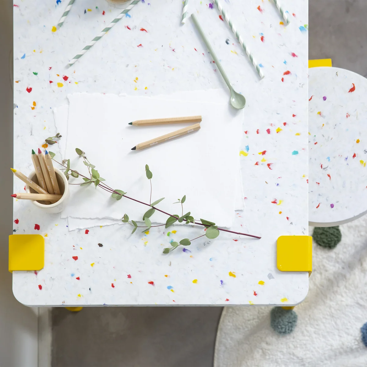 The children's desk Tutti Frutti from the French manufacturer TipToe adds an artistic, creative touch to any child's room! The functional and timeless desk top is made from recycled plastic children's toys. The table legs and supports are made of recyclable steel. The table is ideal for children aged 3 to 6 years.