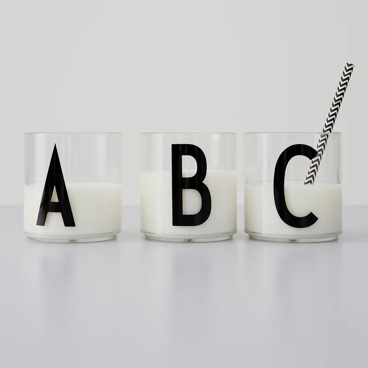 The AJ Kids Personal drinking glass A-Z by Design Letters is a multifunctional cup made of Tritan, each printed with a letter in the typical Arne Jacobsen typography. This makes it the perfect gift for children of all ages, but also for adults. They can use the cup as a storage for pens on the desk or for toothbrushes and cotton buds in the bathroom. Especially in combination with each other the glasses look great - for example on a decorative tray.