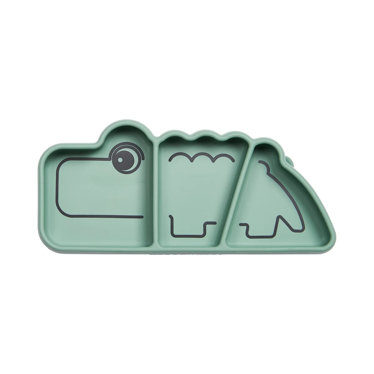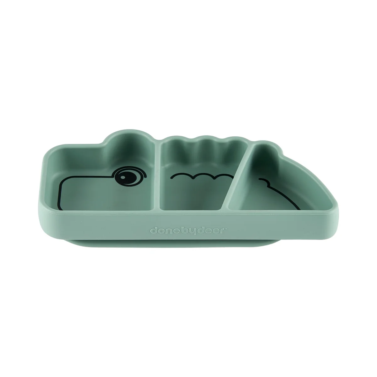 The Done by Deer Croco silicone Stick & Stay plate is an innovative and practical tableware for little eaters. With its charming crocodile design and functional construction, this plate is perfect for little ones to enjoy their meals.