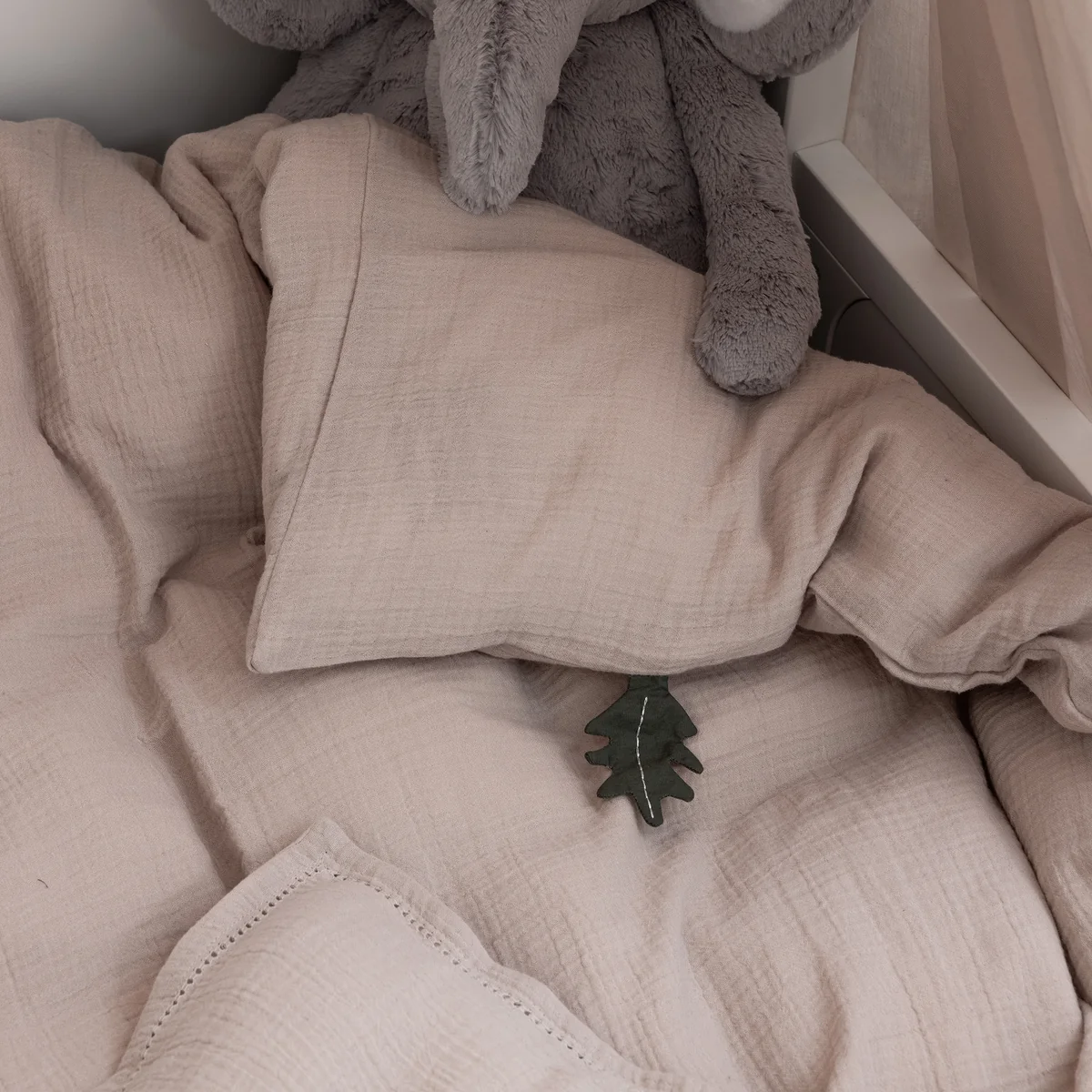 The set includes a junior size comforter and pillow and is perfect for beds of this size. The soft muslin fabric gives the little ones a cozy and comfortable feeling during sleep without restricting breathability.