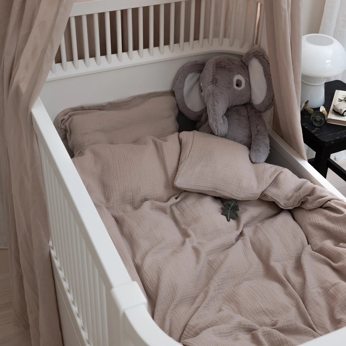 The Sebra junior muslin bed linen is an enchanting accessory that brings comfort and style to any child's room. Made from high quality, breathable muslin, this bedding provides a comfortable and soft sleeping environment for children.