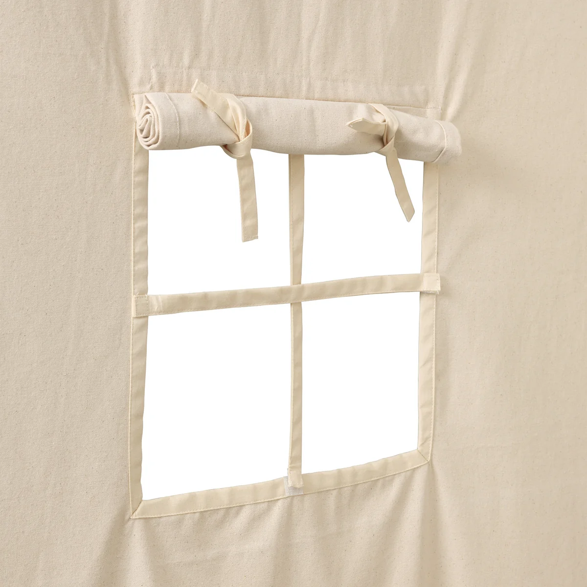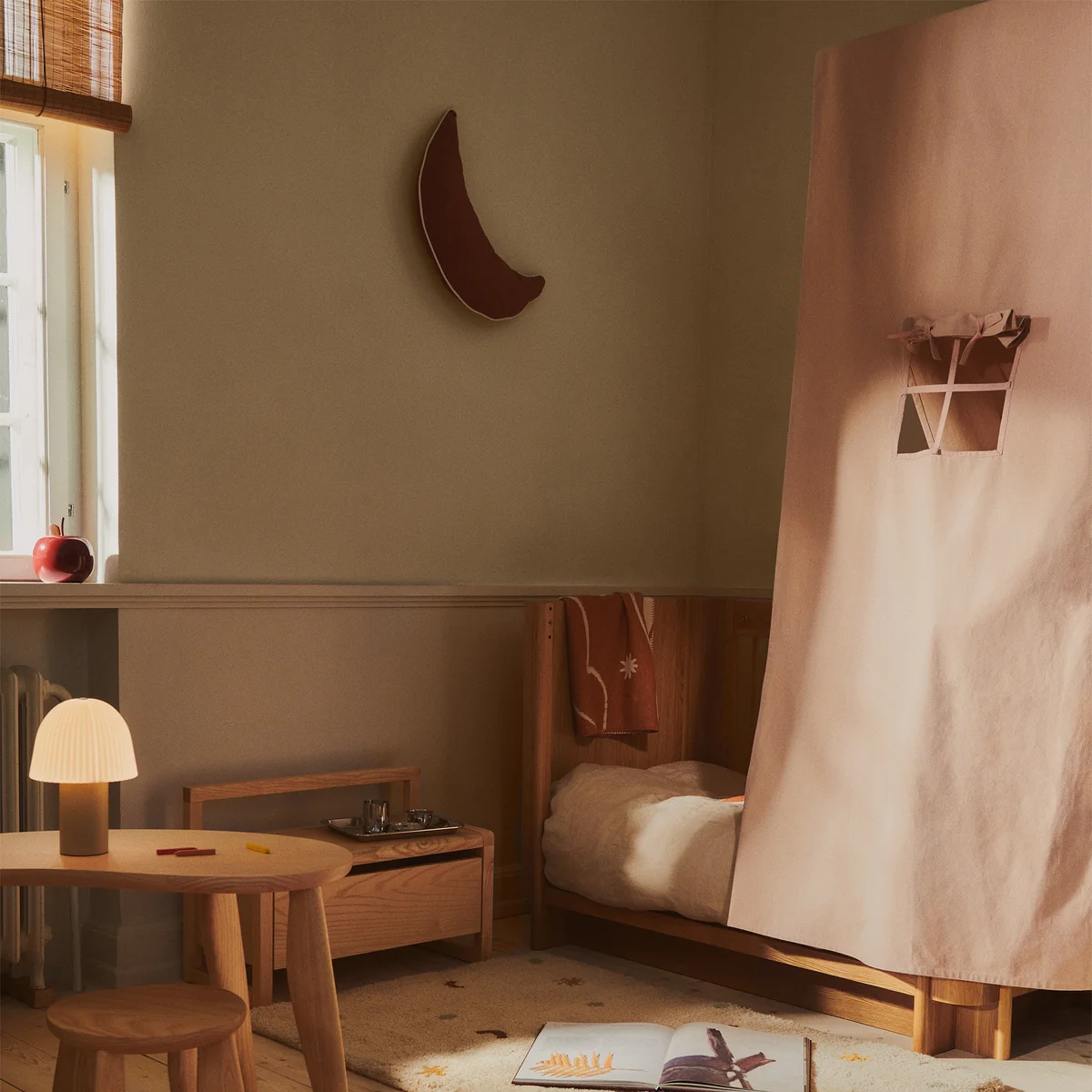 With the Settle children's canopy from the Danish label Ferm Living , the little darlings have a very private retreat. They can hide away comfortably with their favorite books and toys. Settle The canopy is made from undyed organic cotton and can be easily attached to the ceiling using the existing wooden pole and fabric cord. Two small windows and roll-up curtains ensure that the little ones can look out of their hiding place at will. If necessary, clean on a 30°C gentle cycle.