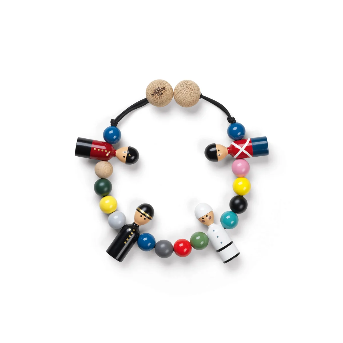 With the pram chain from Kay Bojesen the pram can be decorated even more lovingly. The wooden beads and cute figures are in bright colours and make sure that the little ones have lots of fun! Thanks to the simple construction, the chain is easy to attach to the pram and is suitable for all types of prams.