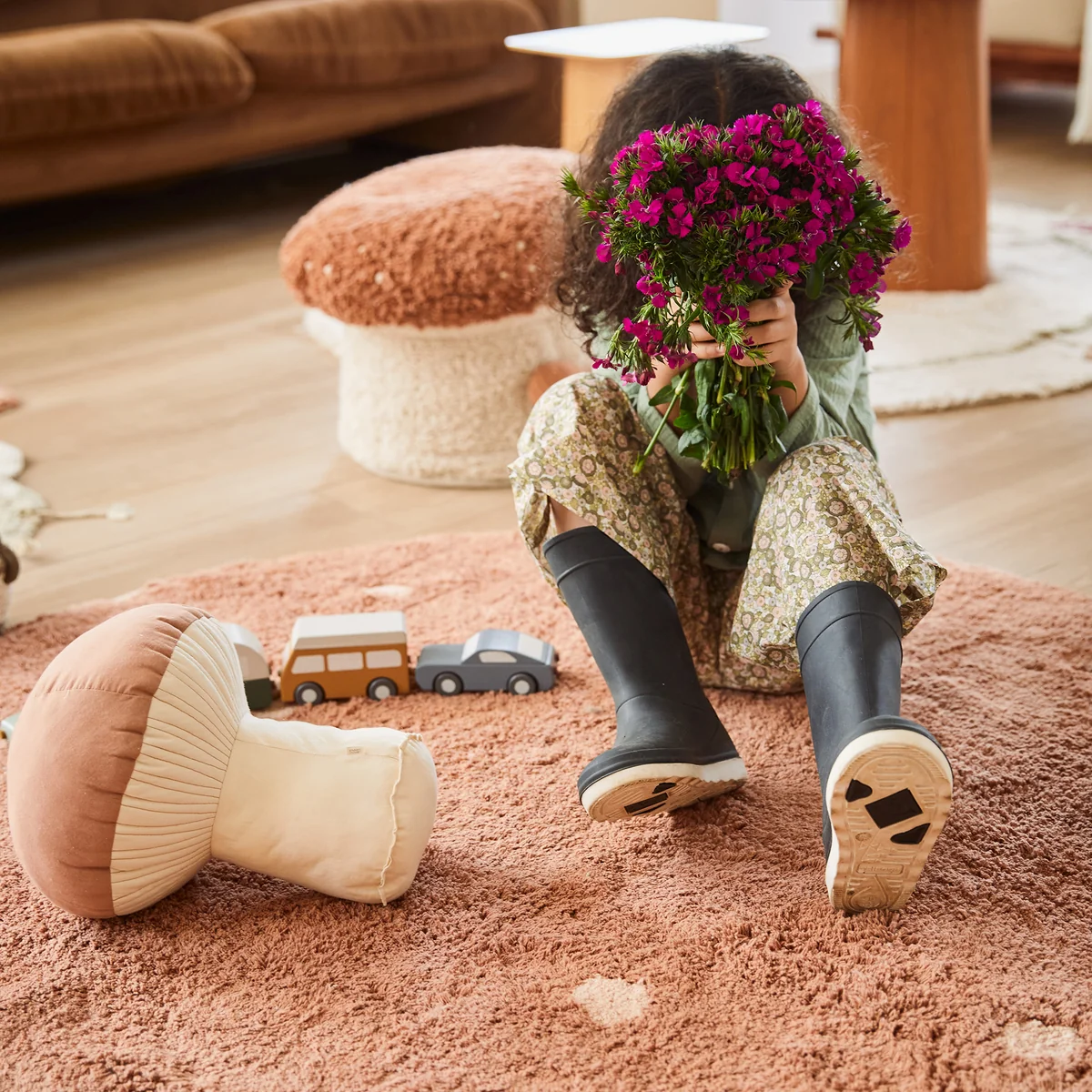 The Lorena Canals toadstool pillow is versatile. It can be placed on the sofa, bed or on an armchair to bring a touch of magic to the living room. Kids will love to snuggle with this pillow or use it as a decoration in their play area.