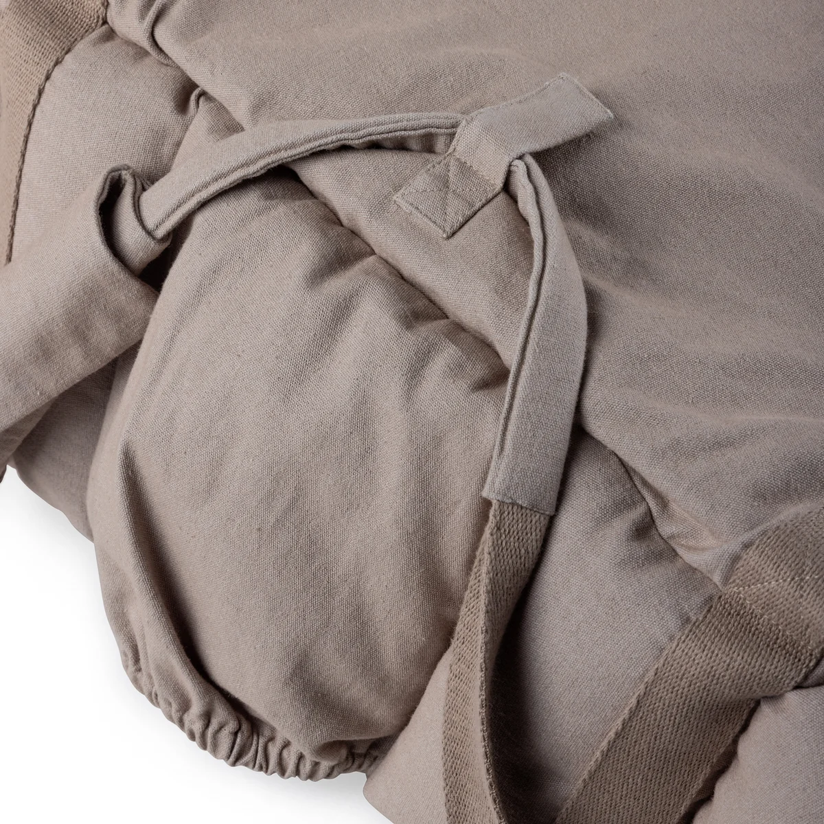 The outer fabric is in jetty beige, while the inside features a pretty unisex leaf print on a light beige background. Thanks to a YKK zipper, the kapok mattress and base can be removed and the cover and mattress can be washed separately at 40 °C. Kapok should be tumble dried.