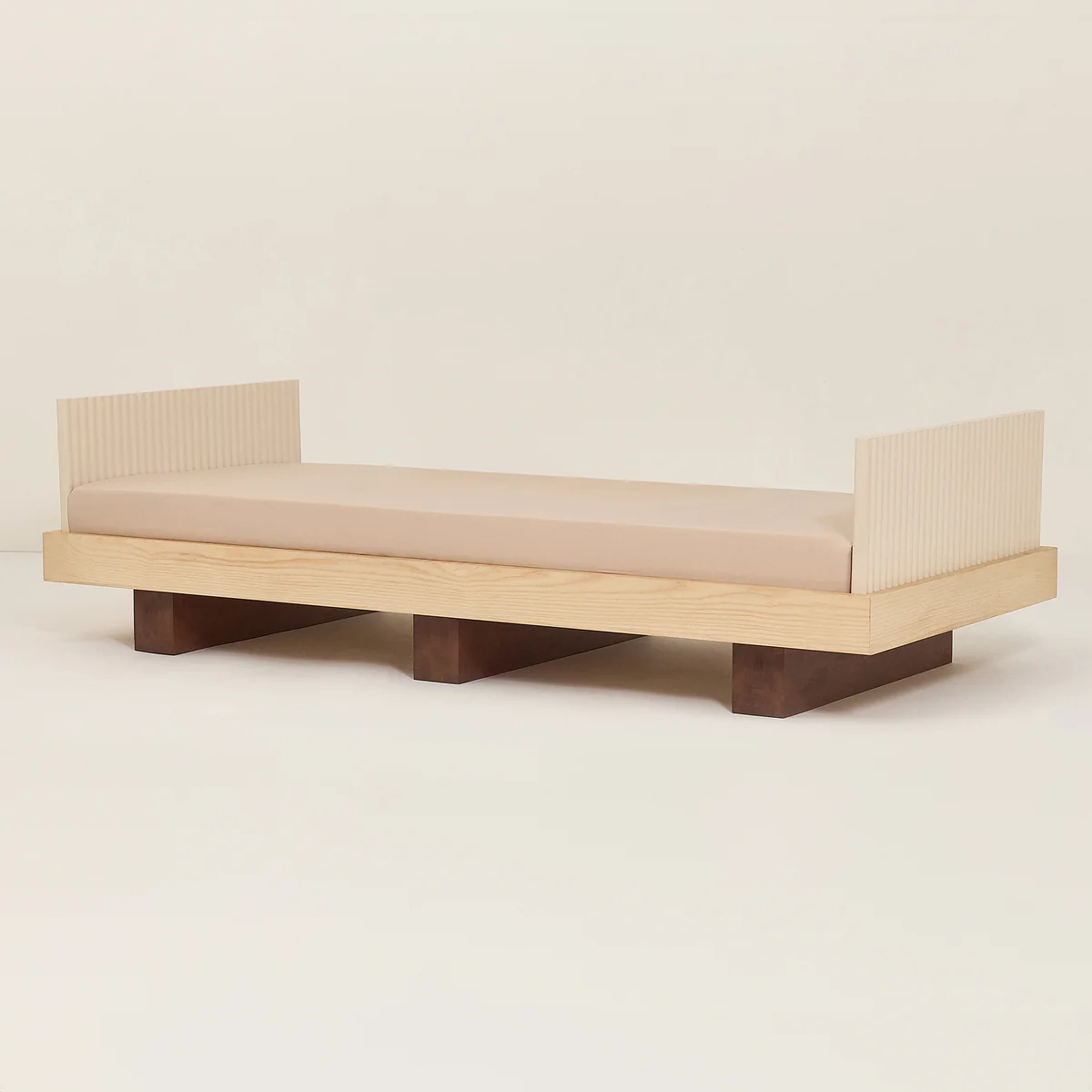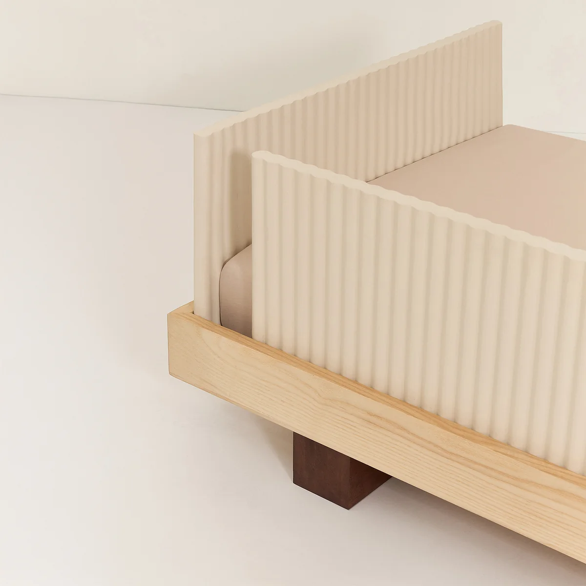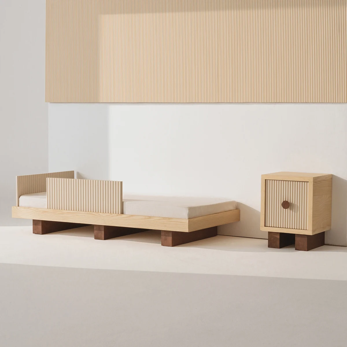 The distinctive bed feet, inspired by traditional Japanese geta sandals, lend the design an elegant simplicity with a cultural reference. Side panels with fine grooves create an exciting interplay of light and shadow and invite children to explore the structure with their fingers - a harmonious combination of aesthetics and feel.