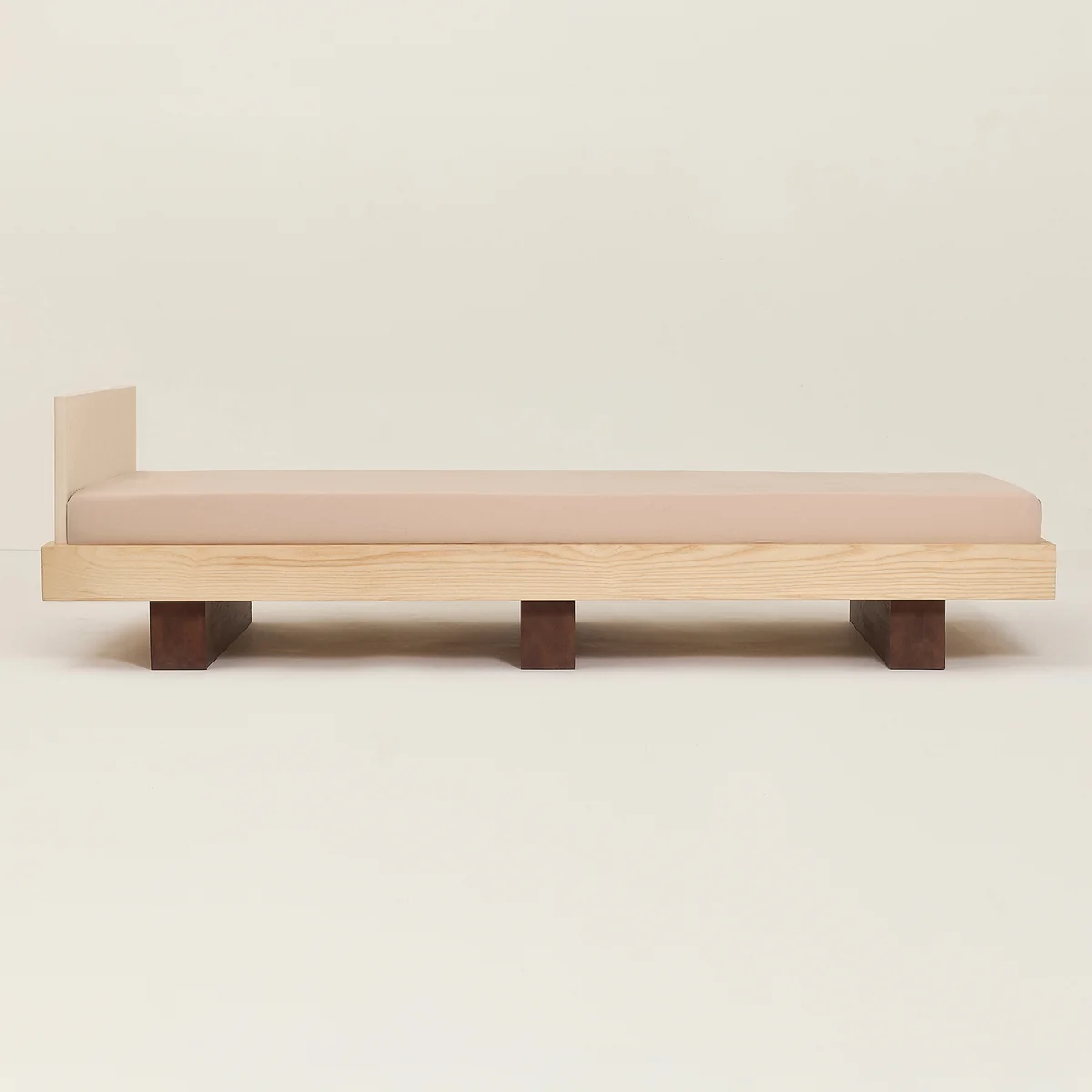 By removing the side elements, the bed can easily be transformed into a stylish day bed - ideal for the cozy corner, the hallway or as a versatile relaxation zone in the living area. The combination of light and dark-stained wood creates a sophisticated contrast with a timeless look.