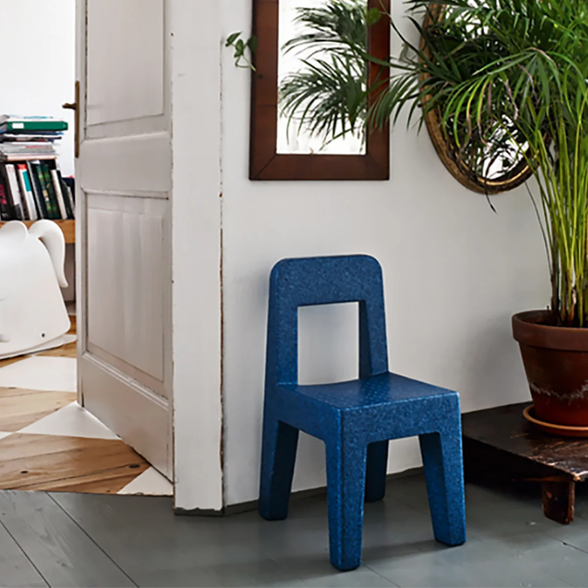The design was created by Enzo Mari who presents with the Seggiolina Pop a timeless and classical picture of a complete chair. For the material he chose sintered expanded polypropylene which has a bit the consistence like Styrofoam but it is more stable.