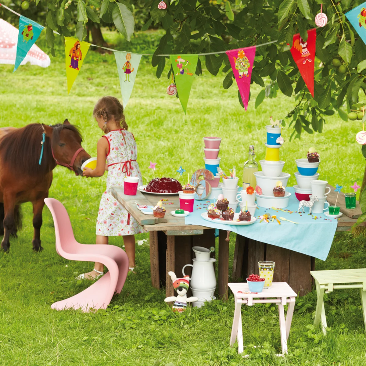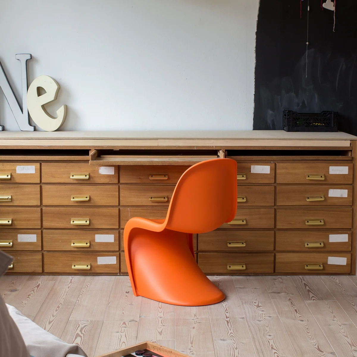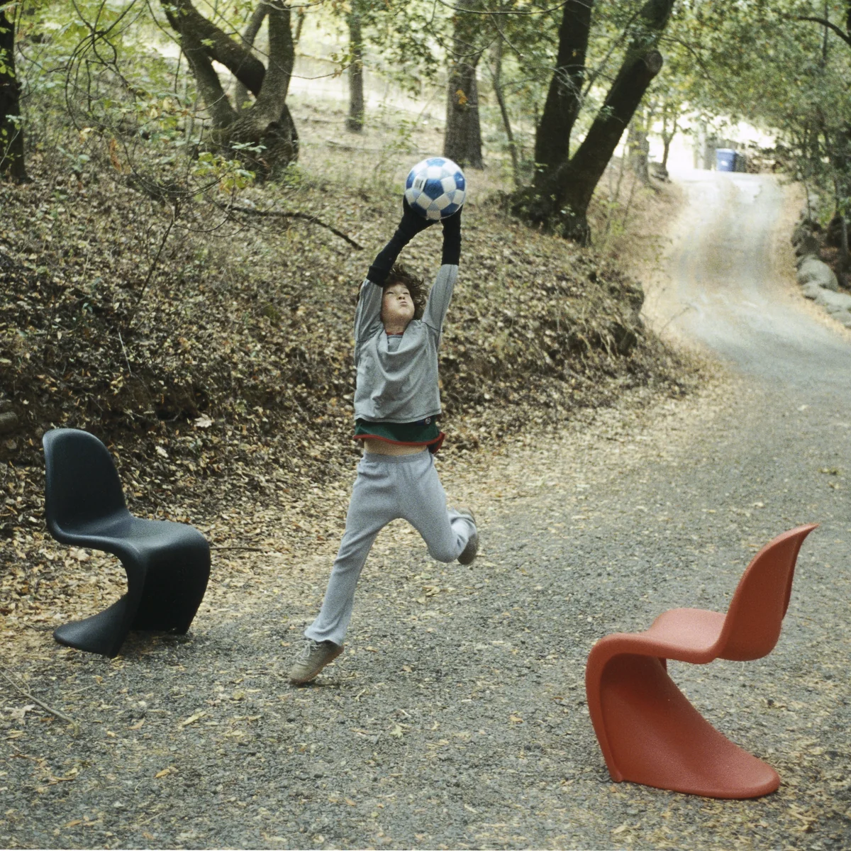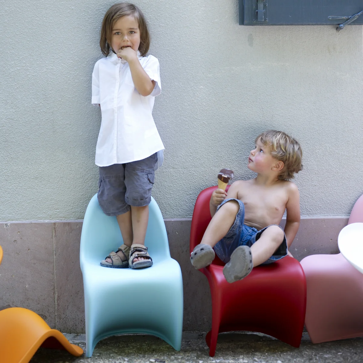 The Panton Junior children's chair from Vitra is a compact version of the original, the Panton Chair from Vitra . Children have always liked the Panton Chair because of its cheerful, strong colours and its pleasantly soft curves - as seating furniture and as a toy. Verner Panton himself therefore pursued the idea of realising a children's version of the chair together with Vitra at an early stage. This project, which failed more than 35 years ago for economic reasons, could now be realized: On the basis of Panton's original plans, the Panton Junior .