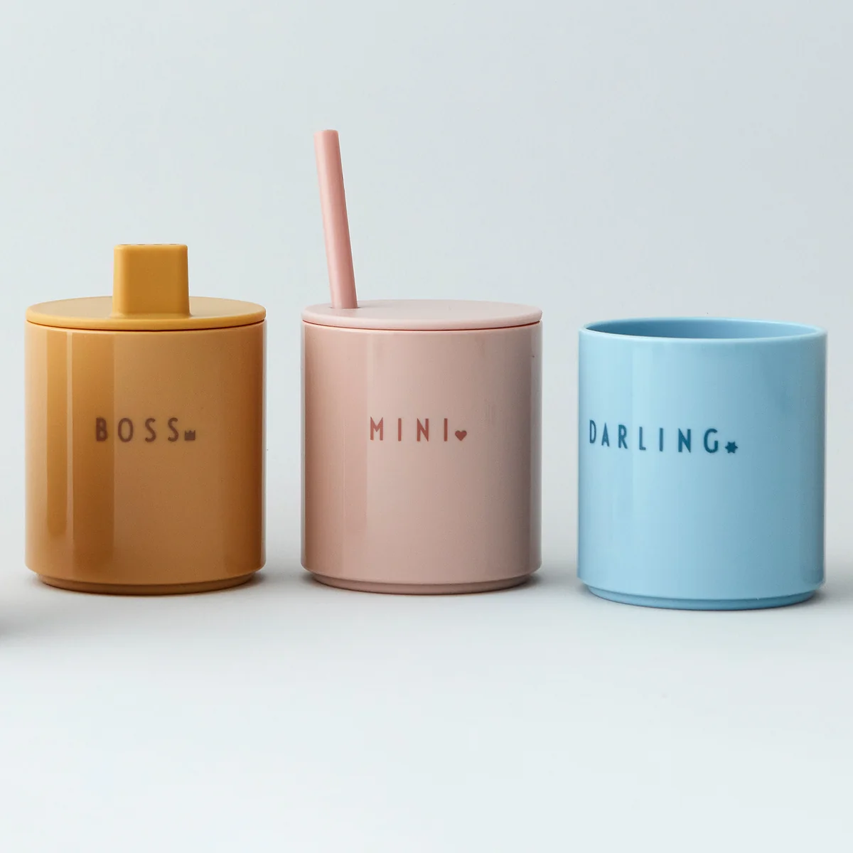 The AJ Mini Favourite Tritan cup from Design Letters is a break-proof children's cup with a sugary sweet inscription. Whether LOVE , DARLING or SWEETHEART - the cups made of BPA- and BSA-free Tritan conjure a smile on the lips of young and old. The inscriptions also come from Arne Jacobsen, probably the most famous architect of the 20. century.