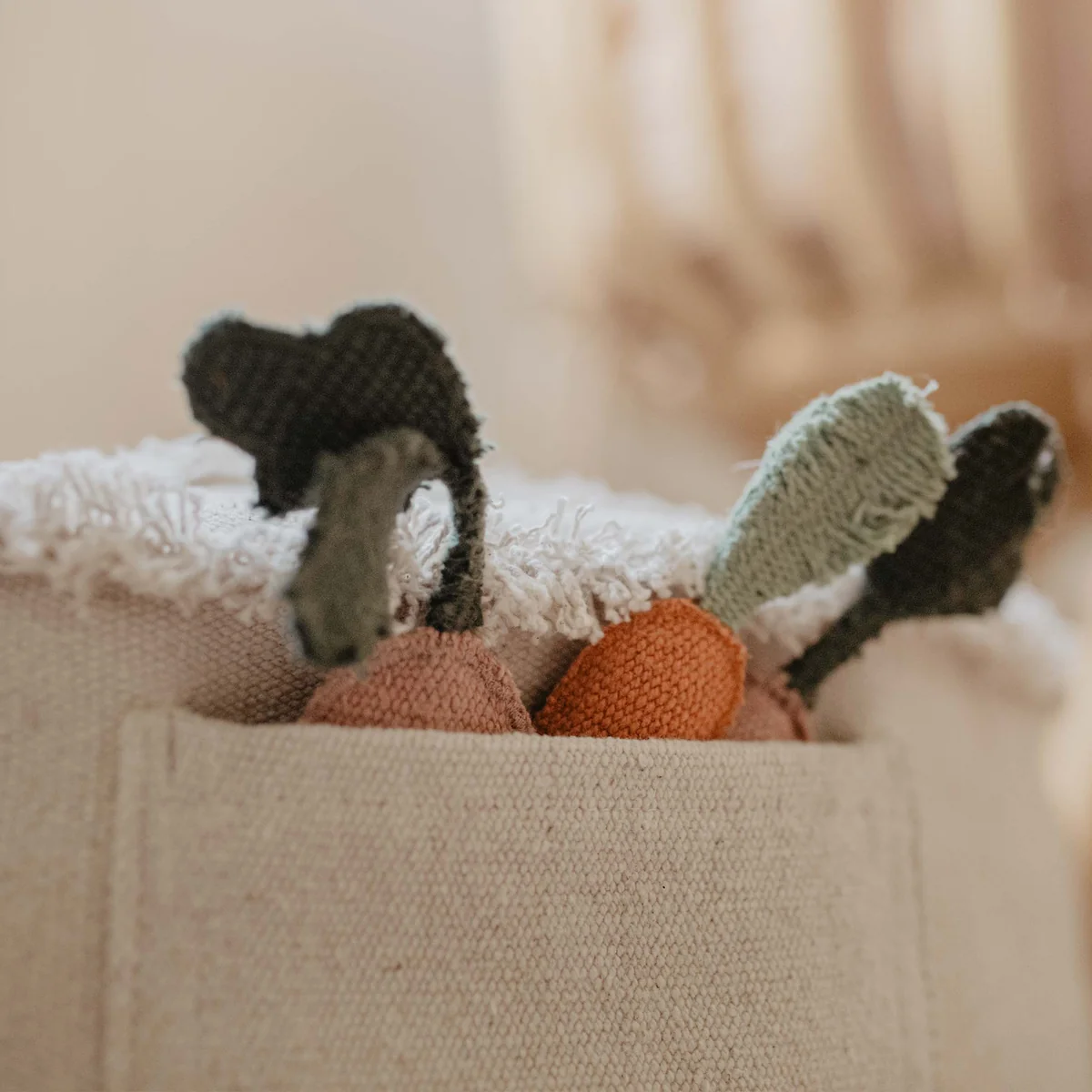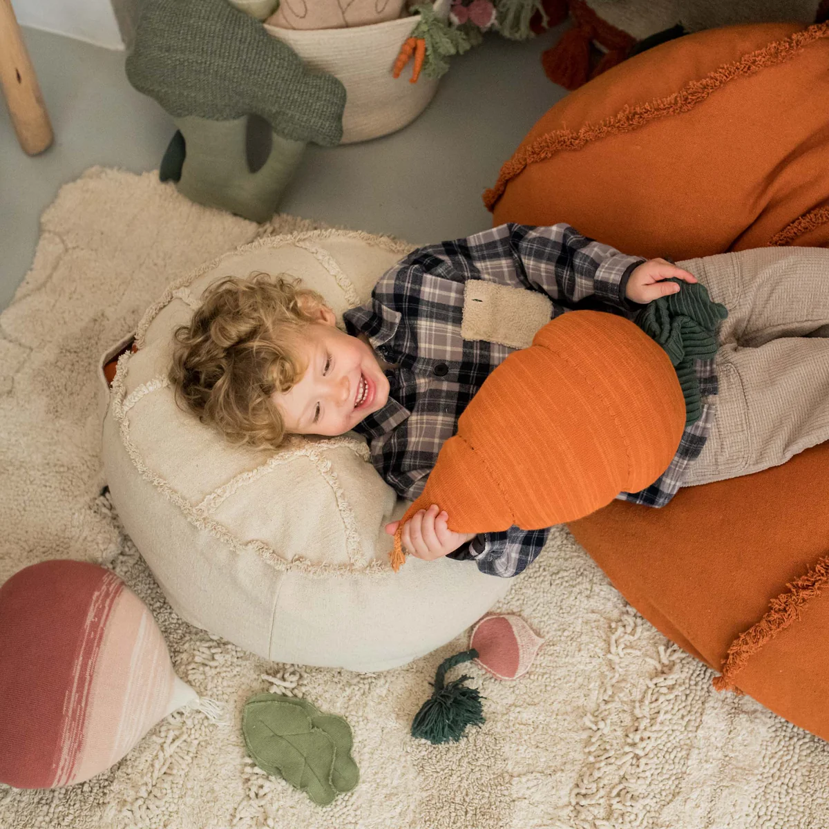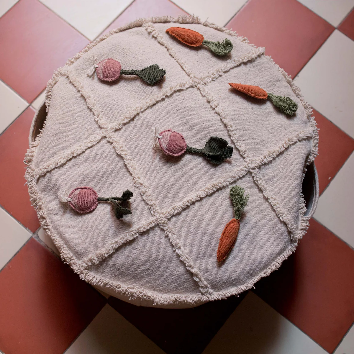 The Tic-Tac-Toe Pouf of the Spanish manufacturer Lorena Canals offer fun and games for the whole family. The pouf is part of the collection of the mother-daughter duo Oli & Carol. The mini fabric veggies serve as game pieces and can be used as often as desired. The cover of the pouf is made of cotton, it is filled with polystyrene beads.