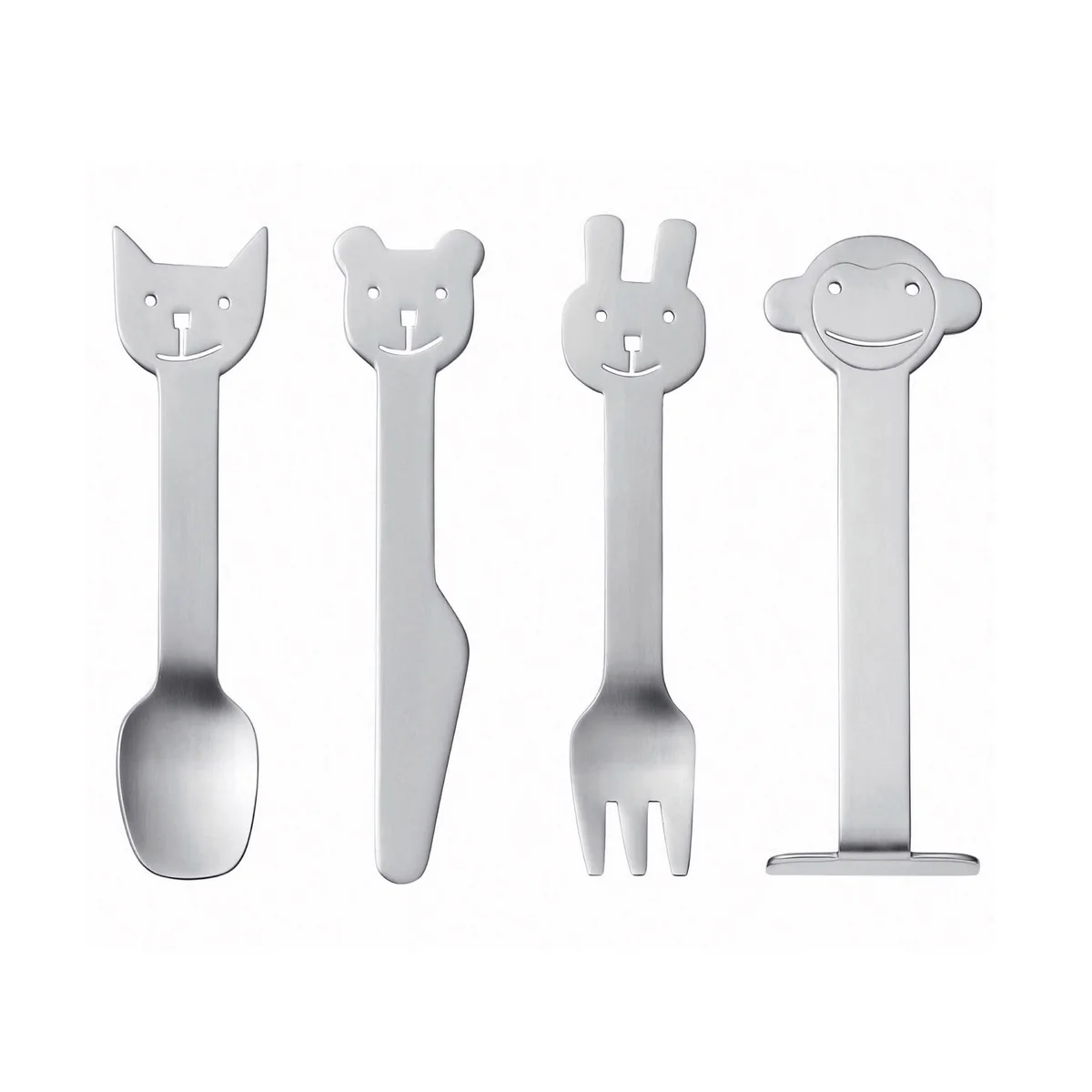 The Animal Children's Cutlery Set is made of high quality, food grade stainless steel, making it sturdy and safe for use by children. Each piece of cutlery features carefully designed and child-friendly handles, which often include animal motifs such as cute animal faces or other playful elements. These appealing designs make eating more appealing to children and encourage them to eat independently.