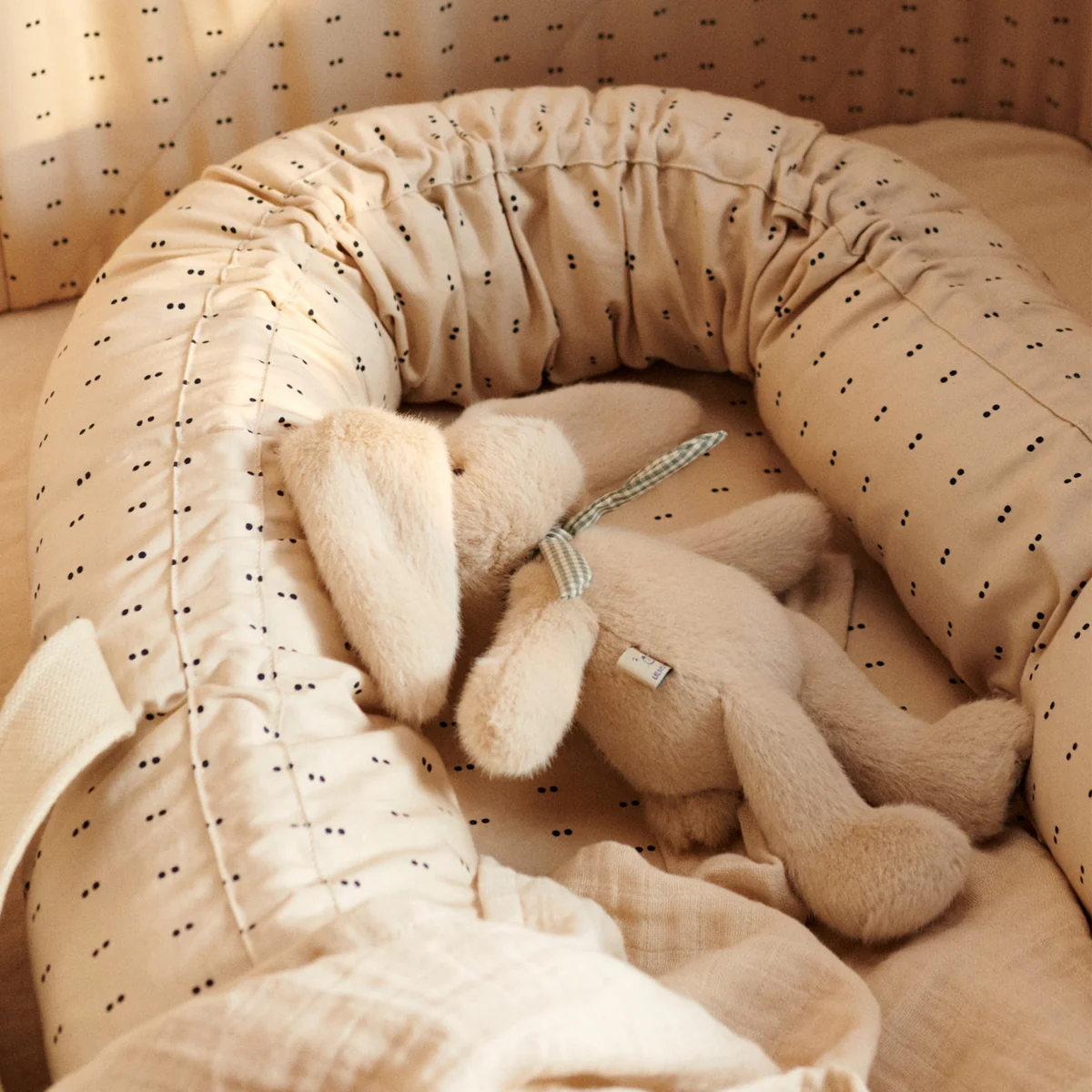The Binnie teddy bear from LIEWOOD is an ultra-soft cuddly toy that accompanies babies and toddlers from day one. Made from 100% GRS-certified recycled polyester, it combines sustainability with a lovely design. A fine bear embroidery on the foot makes him something very special, while the option of combining him with a larger teddy bear creates a small plush family. This makes Binnie not just a cuddly toy, but a lifelong companion and a perfect gift for a birth or christening.