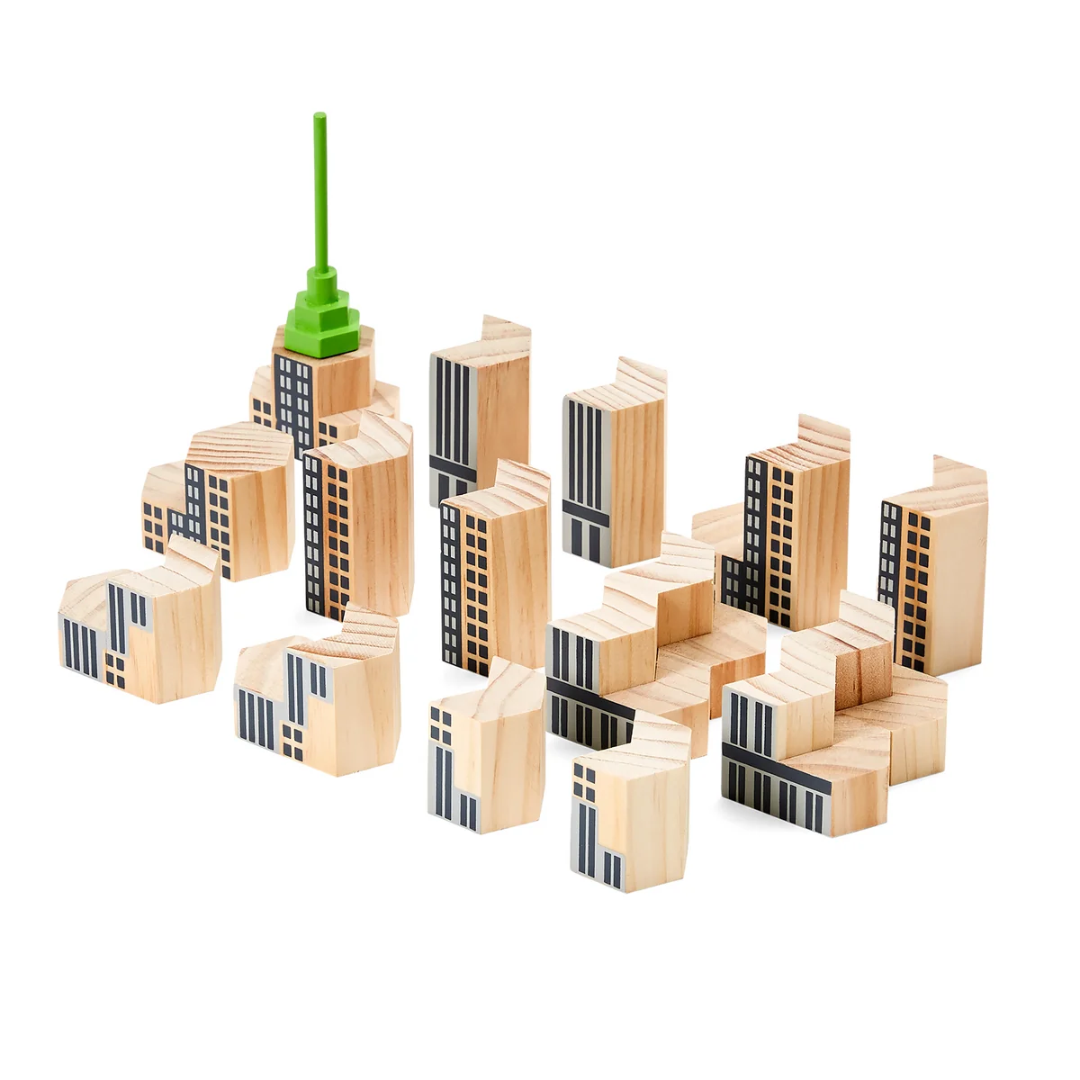 The Big Apple set contains 74 wooden pieces, the Skyscraper set contains 14, and the Greenway set contains 15. They are all inspired by New York City architecture and public spaces. So the ready-built landscapes can be used as a decorative object in the living room or as a toy in the children's room. Also as an unusual gift idea is suitable Blockitecture excellent.