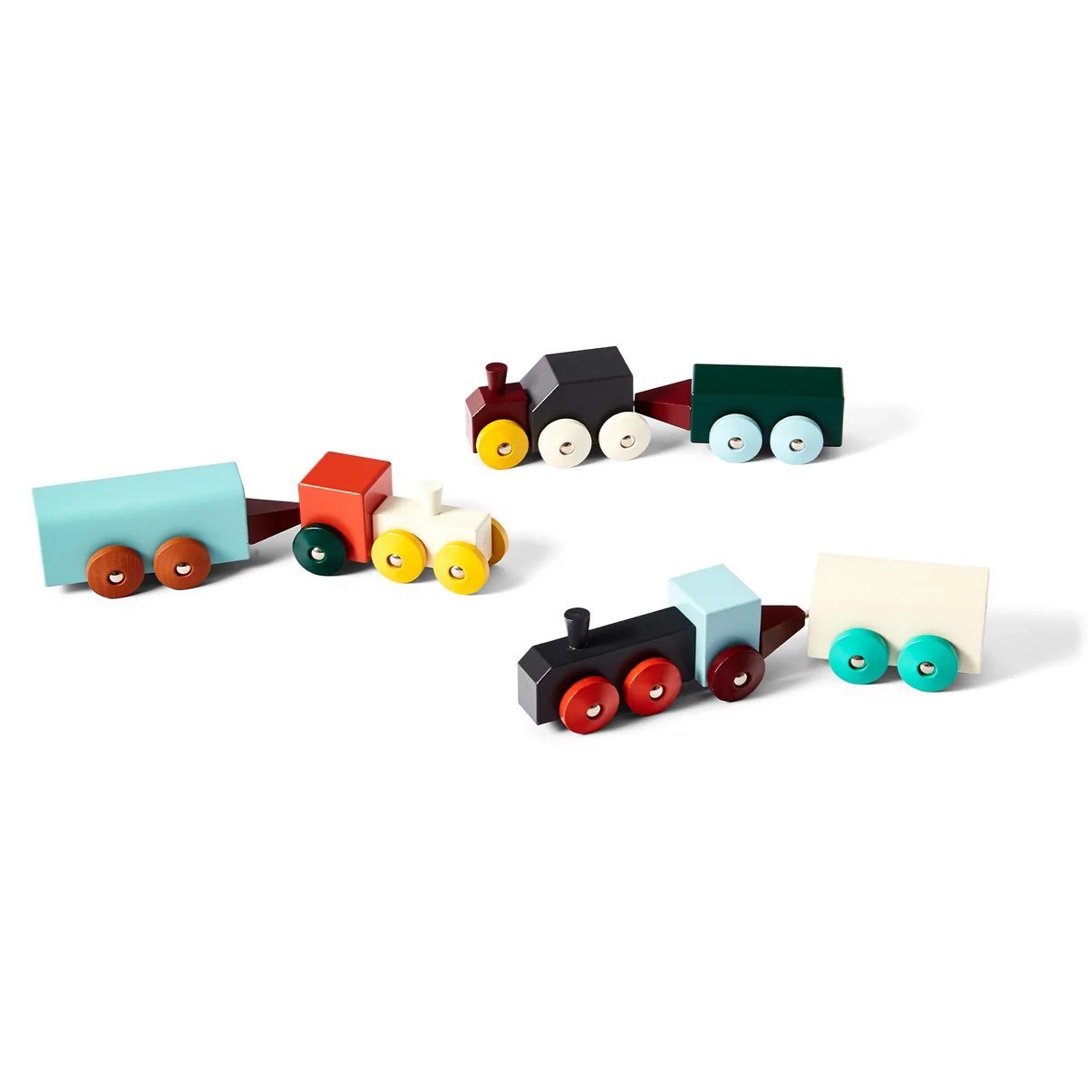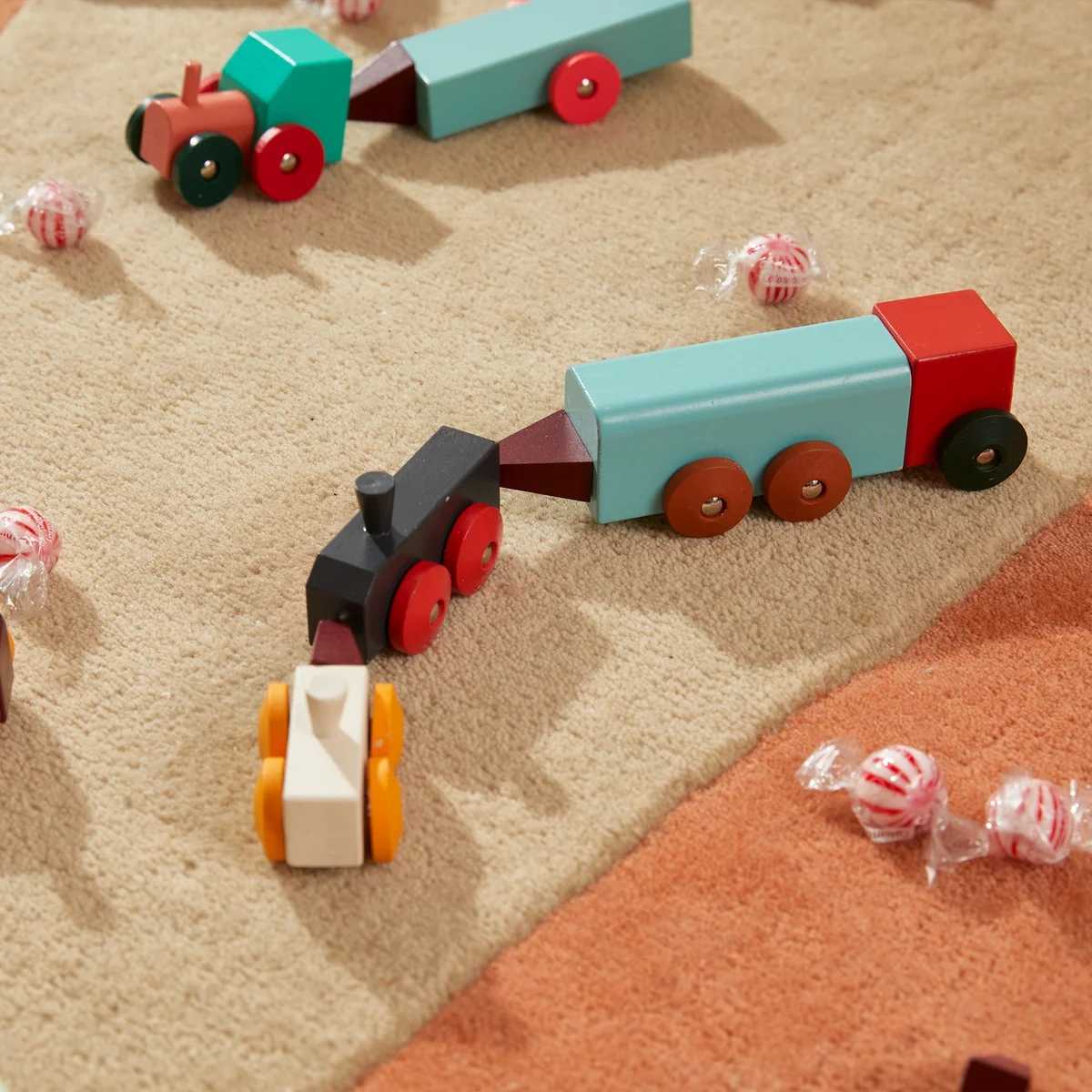 The Hovers wooden toys of the American manufacturer Areaware is made of modern shapes and painted in bright, bold colors. Designer and artist Floris Hovers designed this toy trains and tractors, which at first glance seems quite simple. However, the colorful design makes the wooden elements a great eye-catcher, which brings a smile to the face of both young and old! The individual wooden blocks made of Schima Superba wood can be easily connected thanks to their embedded magnetic connectors. They can be arranged differently over and over again according to personal preference.