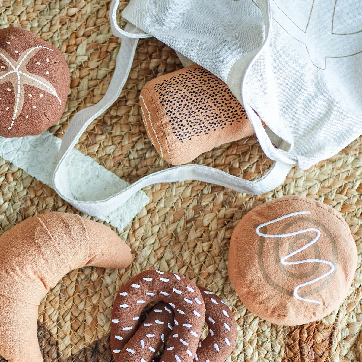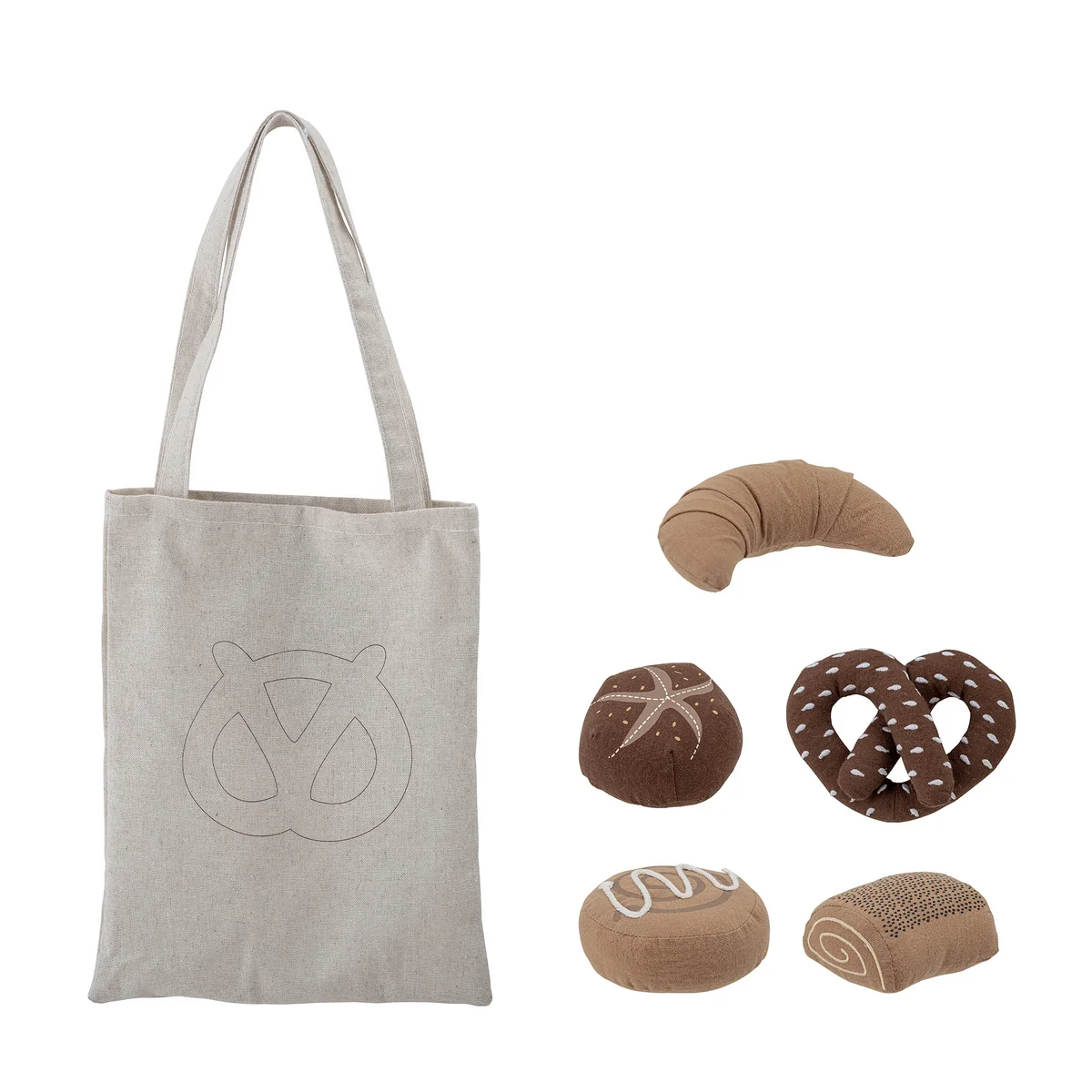 The Mini Snoore playset from Bloomingville is perfect for staging little shopping or breakfast adventures. The playset includes 5 types of bread and a cute baker's bag. The cuddly toy is made of cotton and will fill any child with joy.