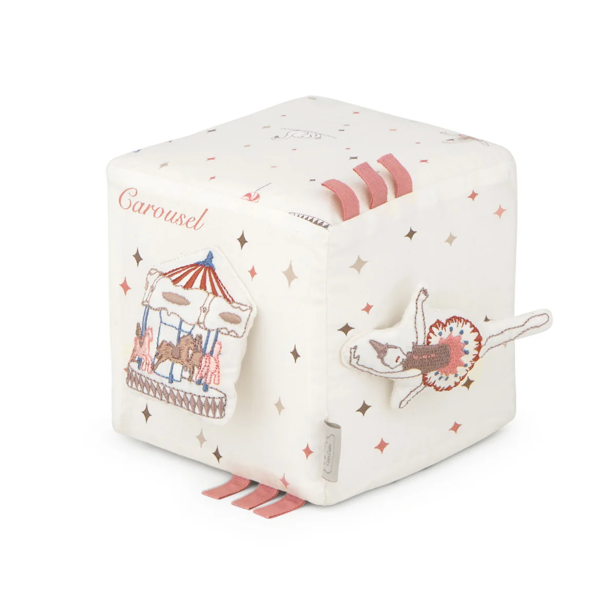 The activity cube from Cam Cam Copenhagen offers all kinds of multi-sensory play options. The upper material of the cube is made of organic cotton, the filling is made of OEKO-Tex Standard polyester. Crinkle, squeak, shake - there are no limits to your baby's curiosity with this activity cube with its cute butterfly design!
