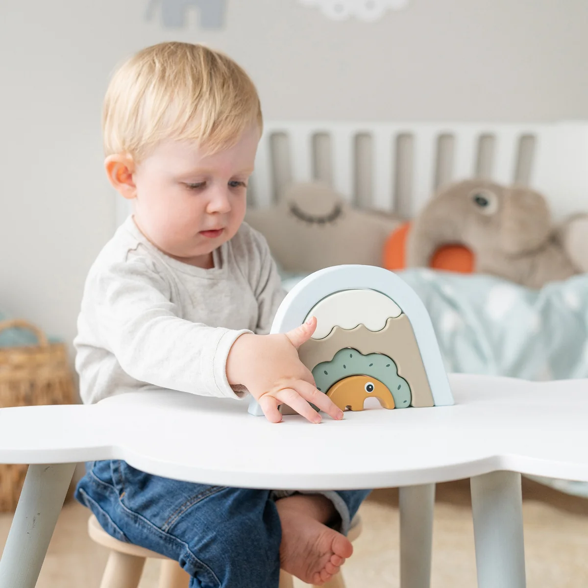 The baby activity toy stacking bow from Done by Deer is a fascinating and colorful toy that stimulates your baby's senses and motor skills. With its differently shaped and textured rings, the stacking bow offers a versatile sensory experience. The vibrant colors and cute animal motifs on the rings attract every baby's attention and stimulate visual perception. The different textures of the rings invite exploration and promote tactile development. Stacking the rings also supports your baby's hand-eye coordination and fine motor skills. With high-quality materials and a well thought-out design, the baby activity toy stacking bow from Done by Deer is not only entertaining, but also safe for little explorers. A perfect toy to promote the development of every baby in a playful way.