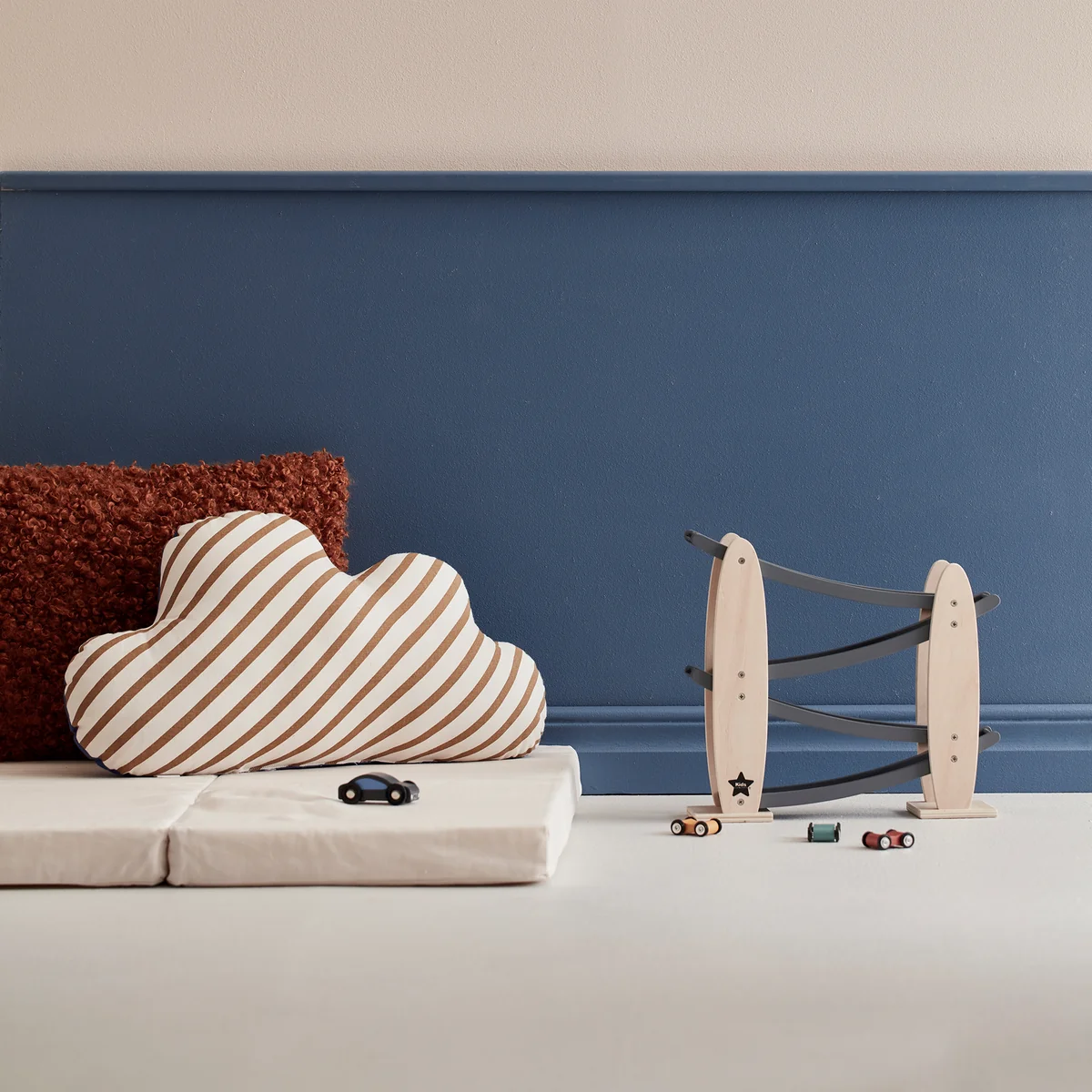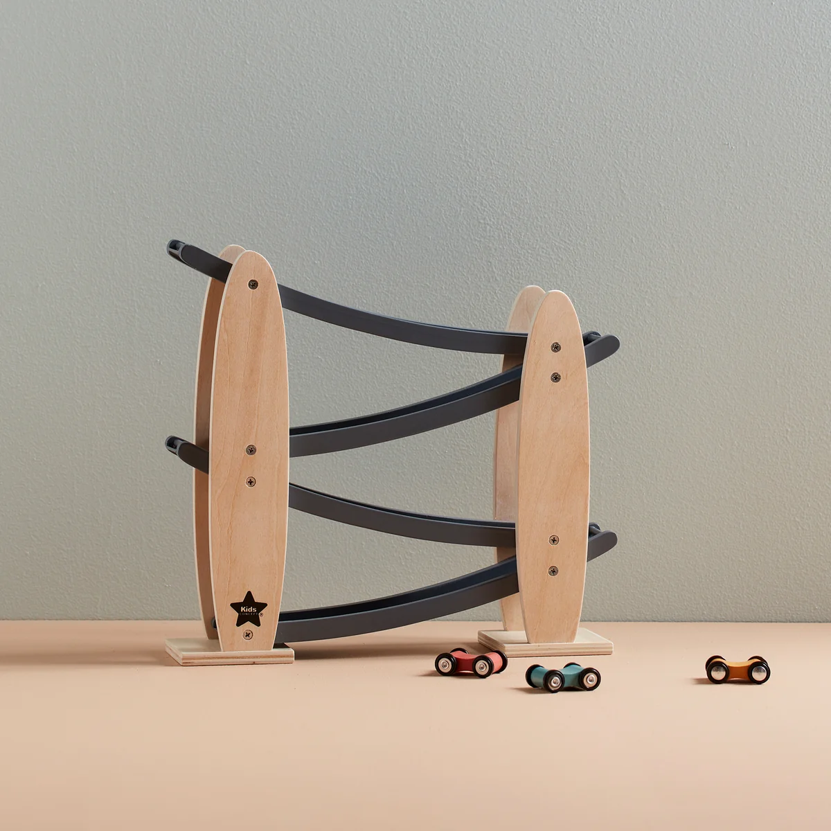 The Aiden ball track with cars from Kids Concept is a well thought-out, three-level car track designed with an ingenious structure. The individual levels are closely connected and provide a seamless sliding experience when released from the top. The three cars race each other around the track, providing a fun way for young children to learn through play.