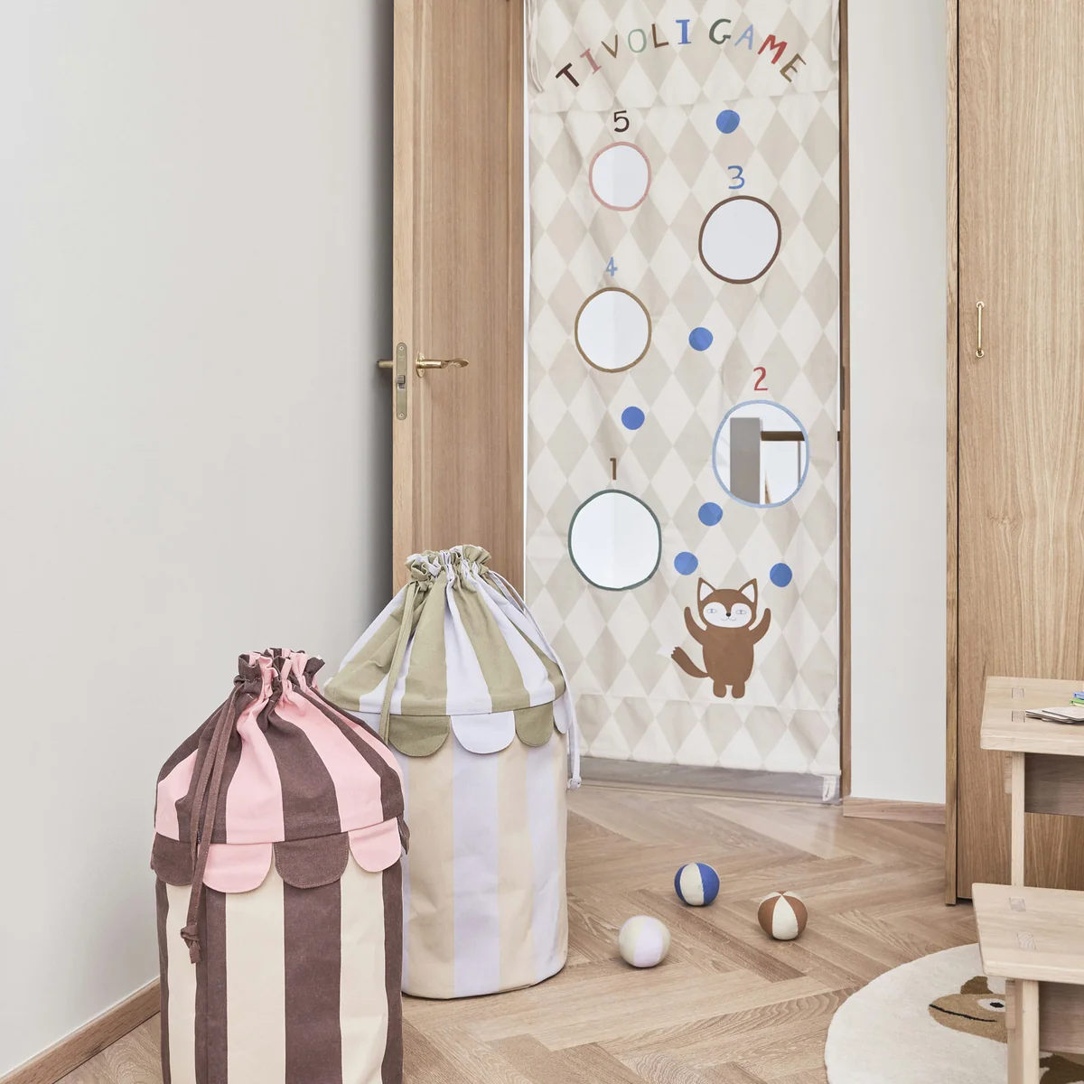 The Tivoli balls from OYOY Mini bring movement, color and feel into play. Made from 100% Oeko-Tex certified cotton and filled with recycled polyester, they offer a soft, non-slip surface and a low weight - ideal for small children's hands. The different patterns and colors stimulate the senses and invite children to grasp, roll or throw. Whether in the nursery, on the play mat or on the go - the balls provide versatile play opportunities with a high standard of material quality.
