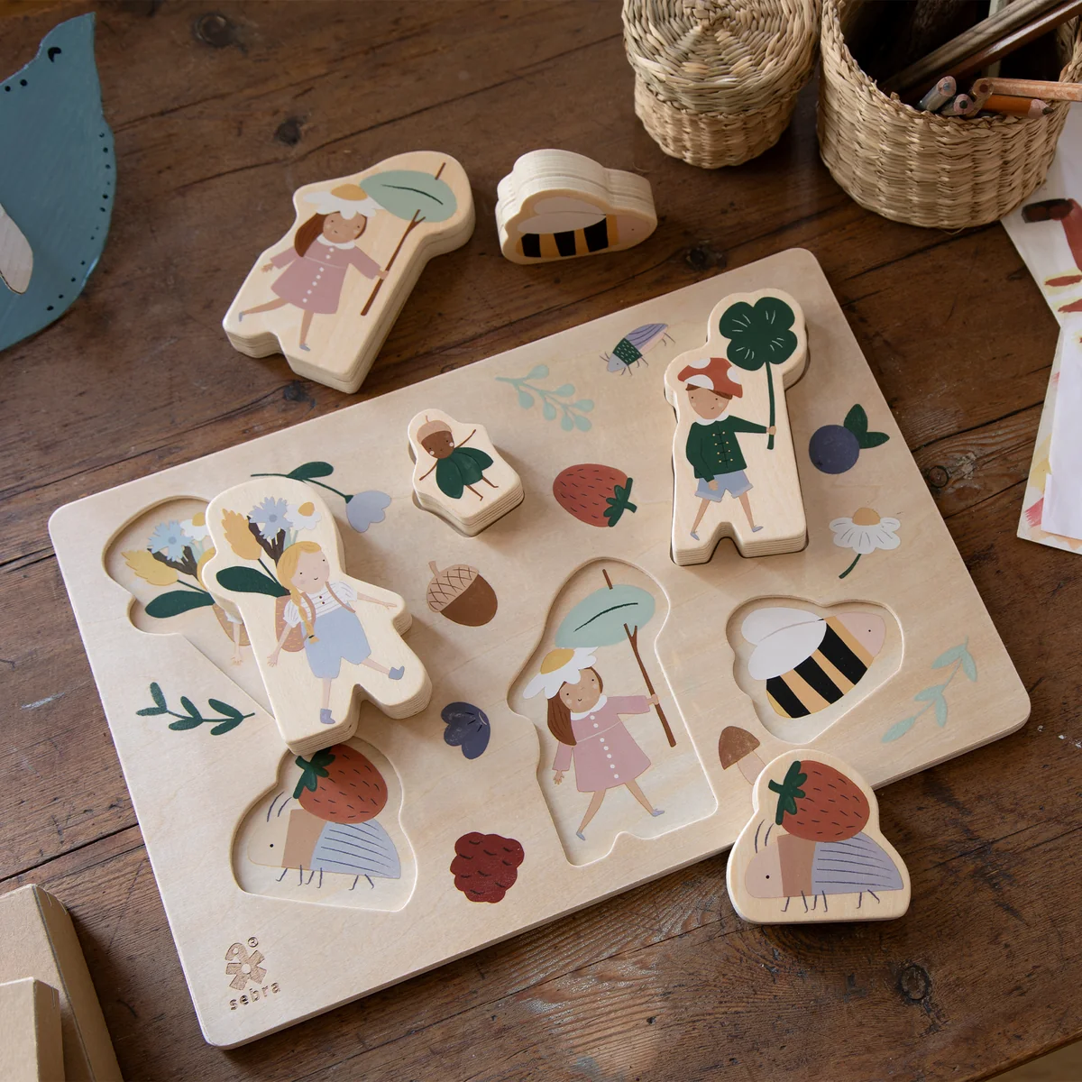 The wooden puzzle from Sebra is block letters or shapes that must be placed in the correct order. From the age of three, the block letters puzzle can help develop children's cognitive and motor skills. The puzzle is based on the modern Latin alphabet and features 26 characters from A to Z. From the age of one, the puzzle with shapes can help develop children's motor skills.