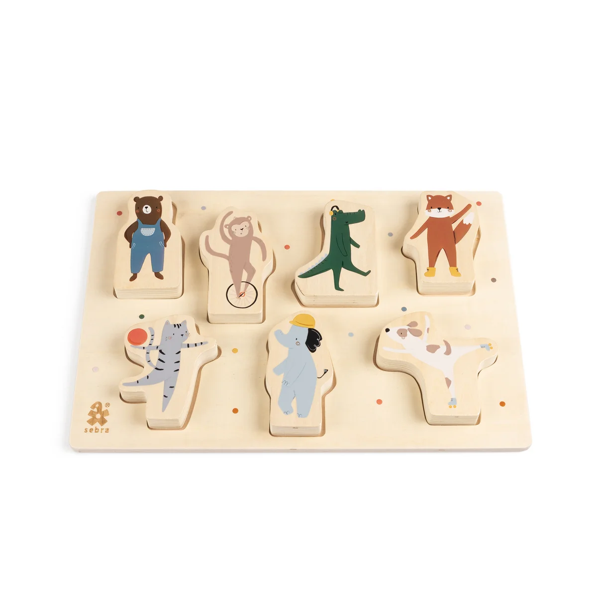 The wooden puzzle from Sebra is block letters or shapes that must be placed in the correct order. From the age of three, the block letters puzzle can help develop children's cognitive and motor skills. The puzzle is based on the modern Latin alphabet and features 26 characters from A to Z. From the age of one, the puzzle with shapes can help develop children's motor skills.