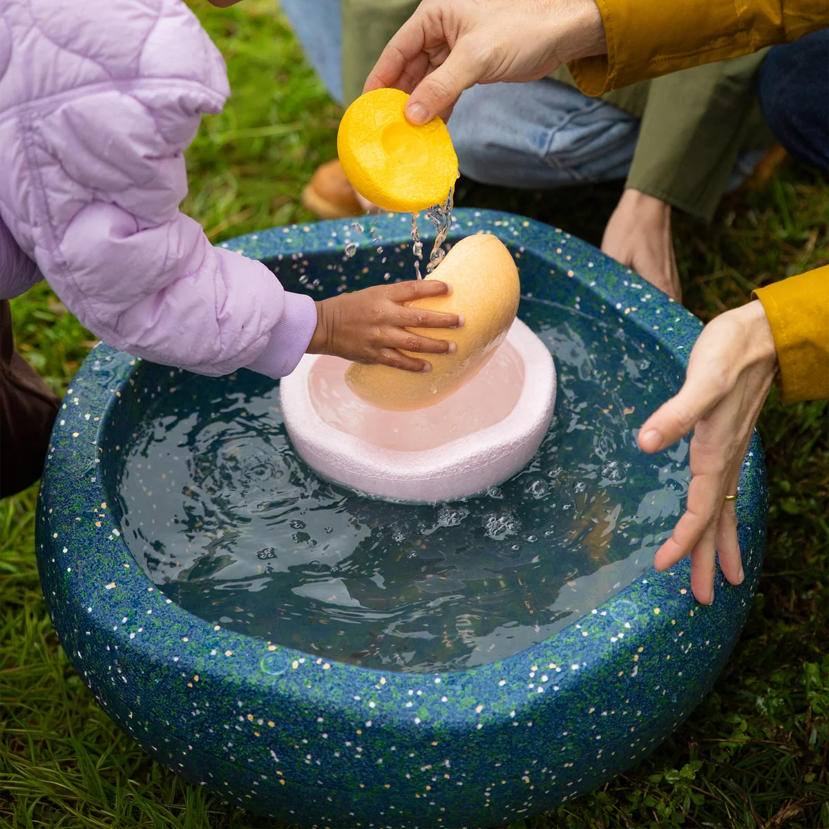 The stacking toy is safe to use as it has no sharp corners and is also water-, saliva- and UV-resistant. The Stapelstein® Inside elements can withstand a load of up to 50 kg.