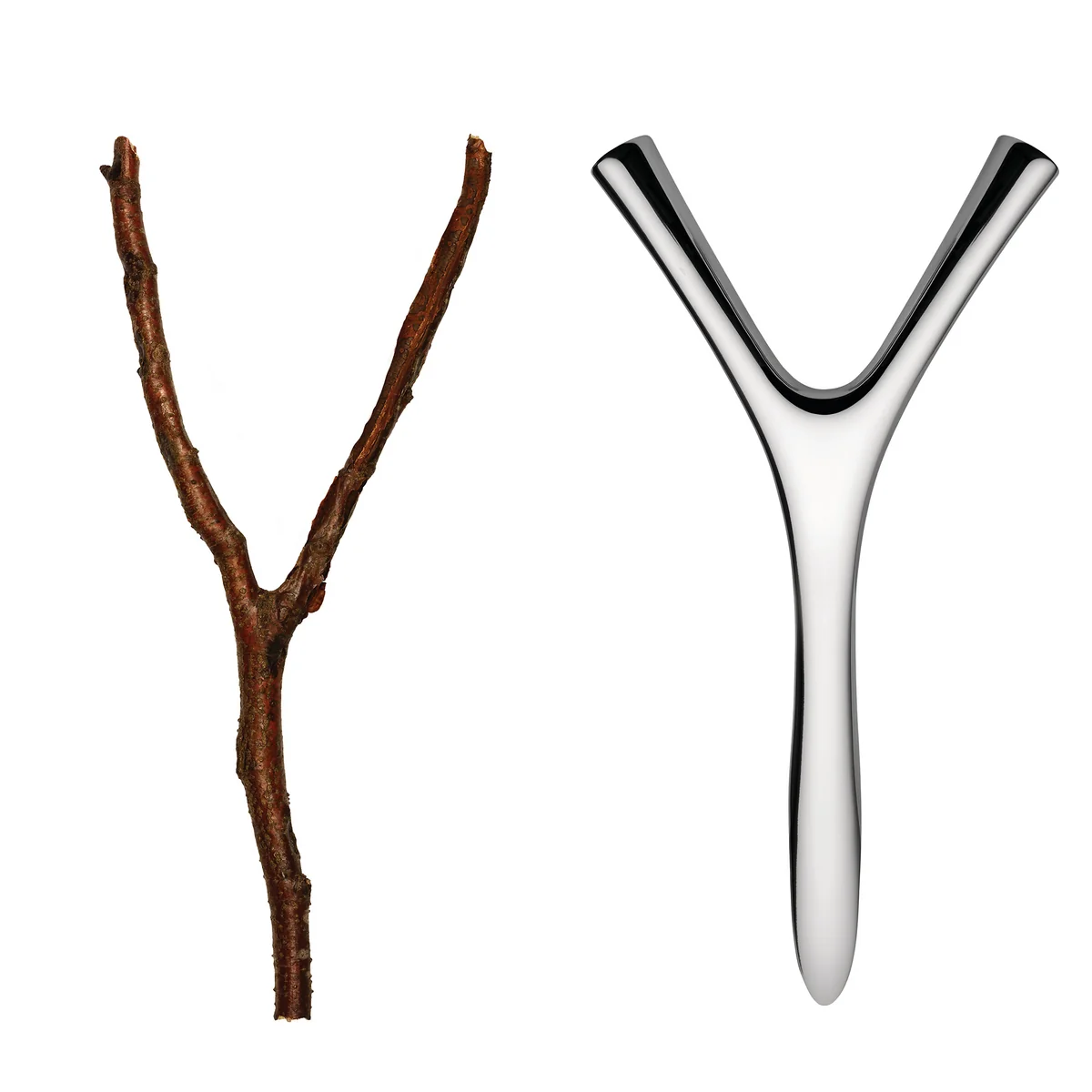 The Virgula Divina bottle opener was designed by Frédéric Gooris. "Virgula Divina" is Latin and translates to dowsing rod. Fortune-hunters used to look for water and other resources with the help of the Y-shaped instrument. Now the dowsing rod does not only help to find the water but also opens the bottle in which it can be found.