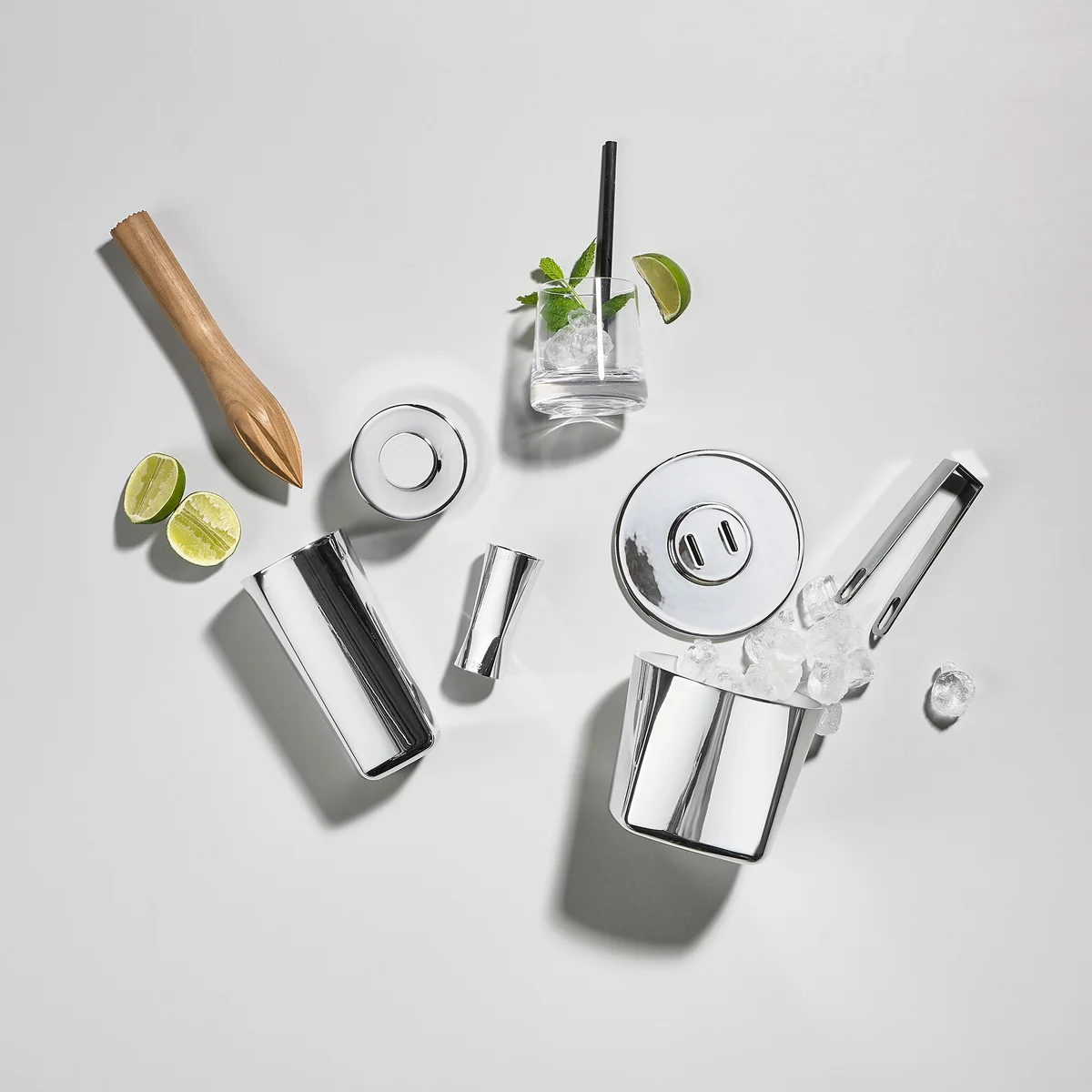 The Rocks cocktail shaker from Mavro // Lefèvre for Zone Denmark should not be missing in any good bar. Made of highly polished stainless steel, the shape of the classic shaker was inspired by a melting ice cube. A lid with integrated filter makes the shaker in different capacities particularly practical.