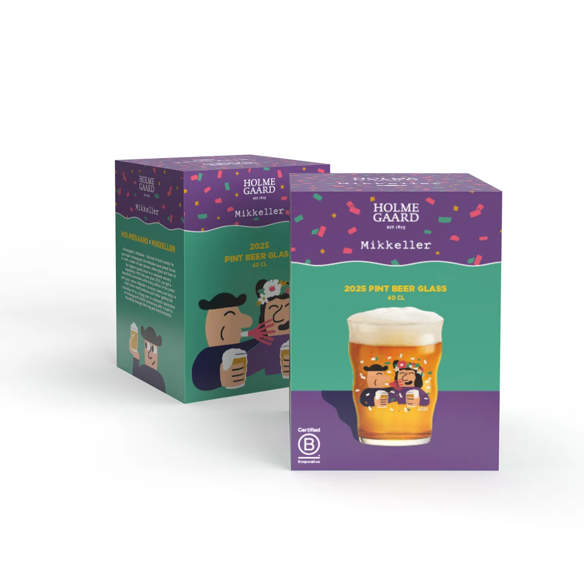 The Mikkeller pint beer glass from Holmegaard is a classic pint glass created in collaboration with the Danish craft brewery Mikkeller. With its straight, conical shape, it sits comfortably in the hand and offers sufficient volume for different types of beer. The robust glass is suitable for everyday use and dishwasher-safe - ideal for relaxed beer enjoyment at home. The striking Mikkeller illustration rounds off the design and also makes the glass attractive to collectors.