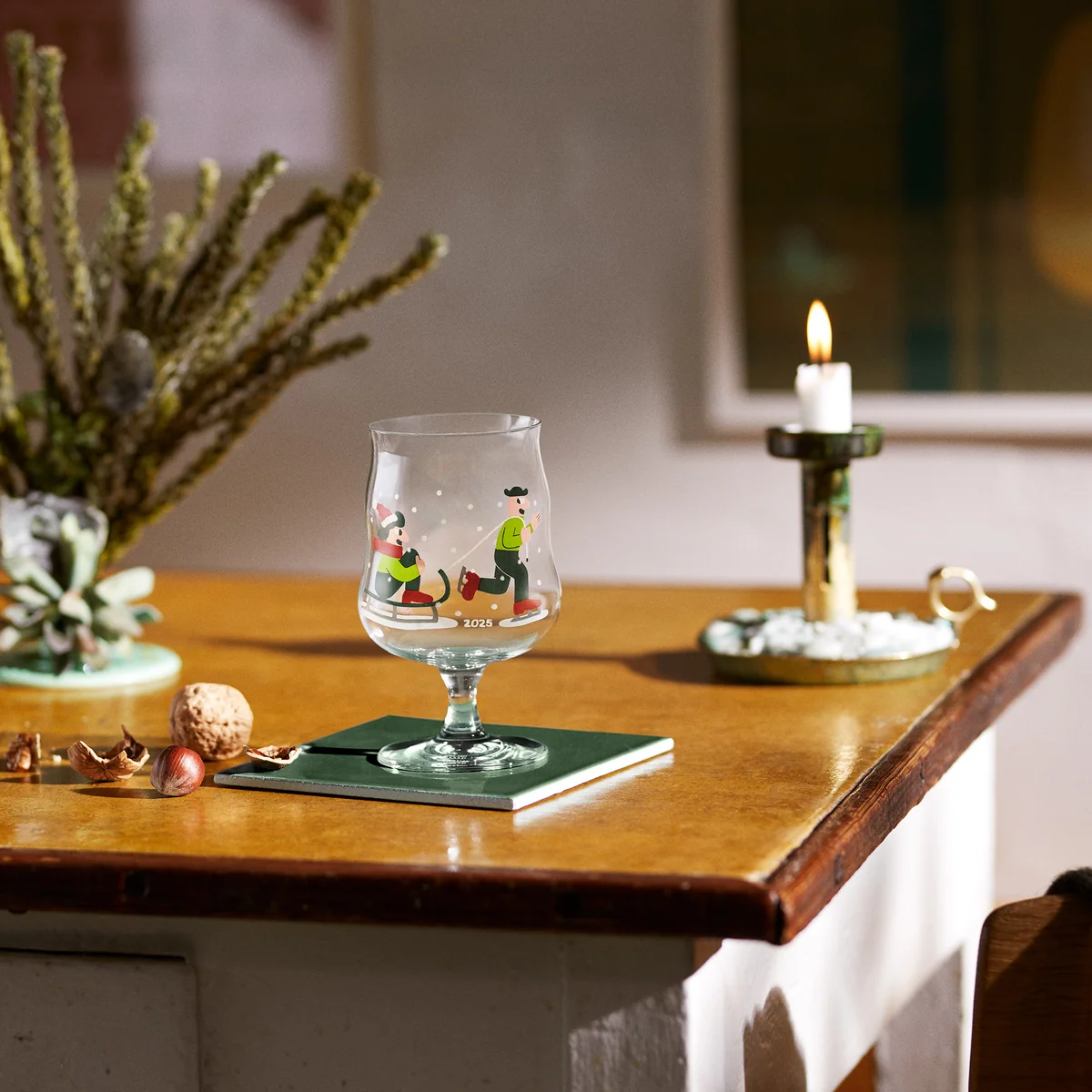 The Mikkeller Universal Christmas Beer Glass from Holmegaard is the result of a special collaboration with the Danish craft brewery Mikkeller. It has been specially developed to enjoy a wide variety of beers - from classic lagers to complex Christmas specialties. The clear, tulip-shaped silhouette ensures that the aromas develop perfectly, while the fine glass offers a pleasant drinking experience. The festive design with Mikkeller illustration gives the glass seasonal charm and makes it an ideal gift for beer lovers and collectors.