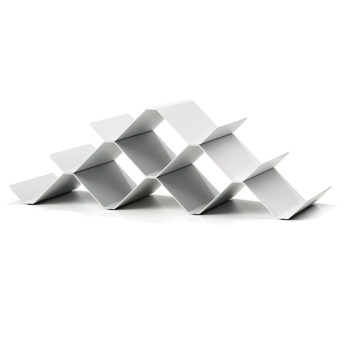 The Rocks wine rack of the Danish label Zone Denmark inspires with its pyramid-like design. It can hold up to nine wine bottles, but can also be reduced in size if necessary. The stylish shelf is made of iron and is available in different colors. It can be placed on shelves in the living room or in the home bar.