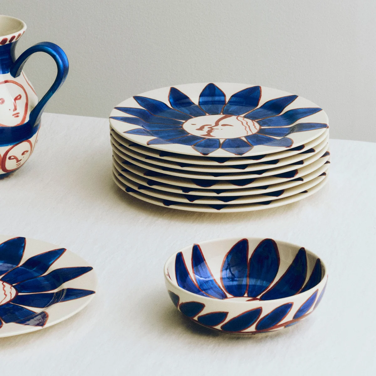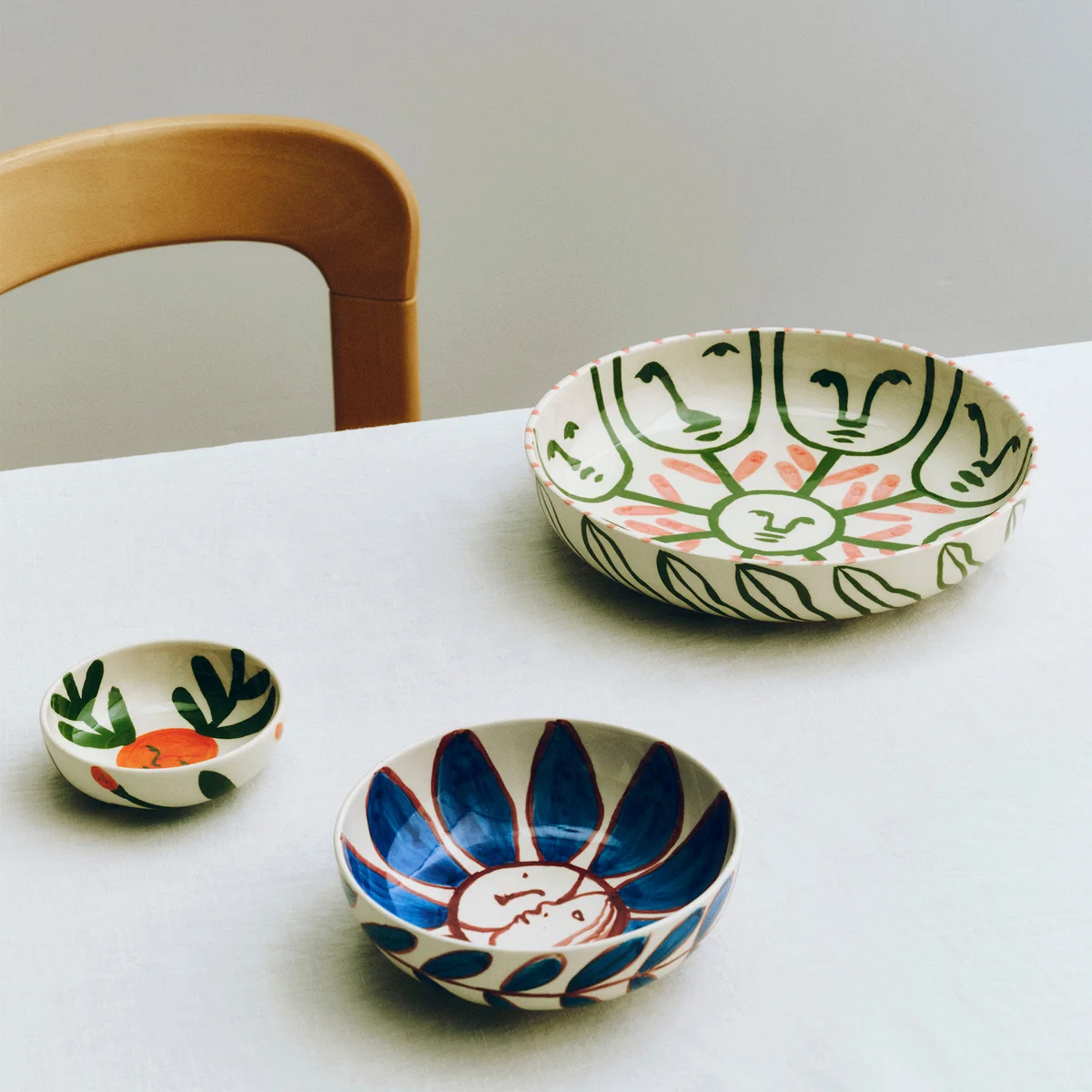 The bowl from the La Pittura series by HAY combines functional ceramic design with the lively visual language of artist Emma Kohlmann. Each bowl is individually hand-painted, giving it a unique expression. The colorful motifs, inspired by historical ceramics and Renaissance originals, make the bowl a special piece for everyday use or as a decorative object on the table, sideboard or wall.