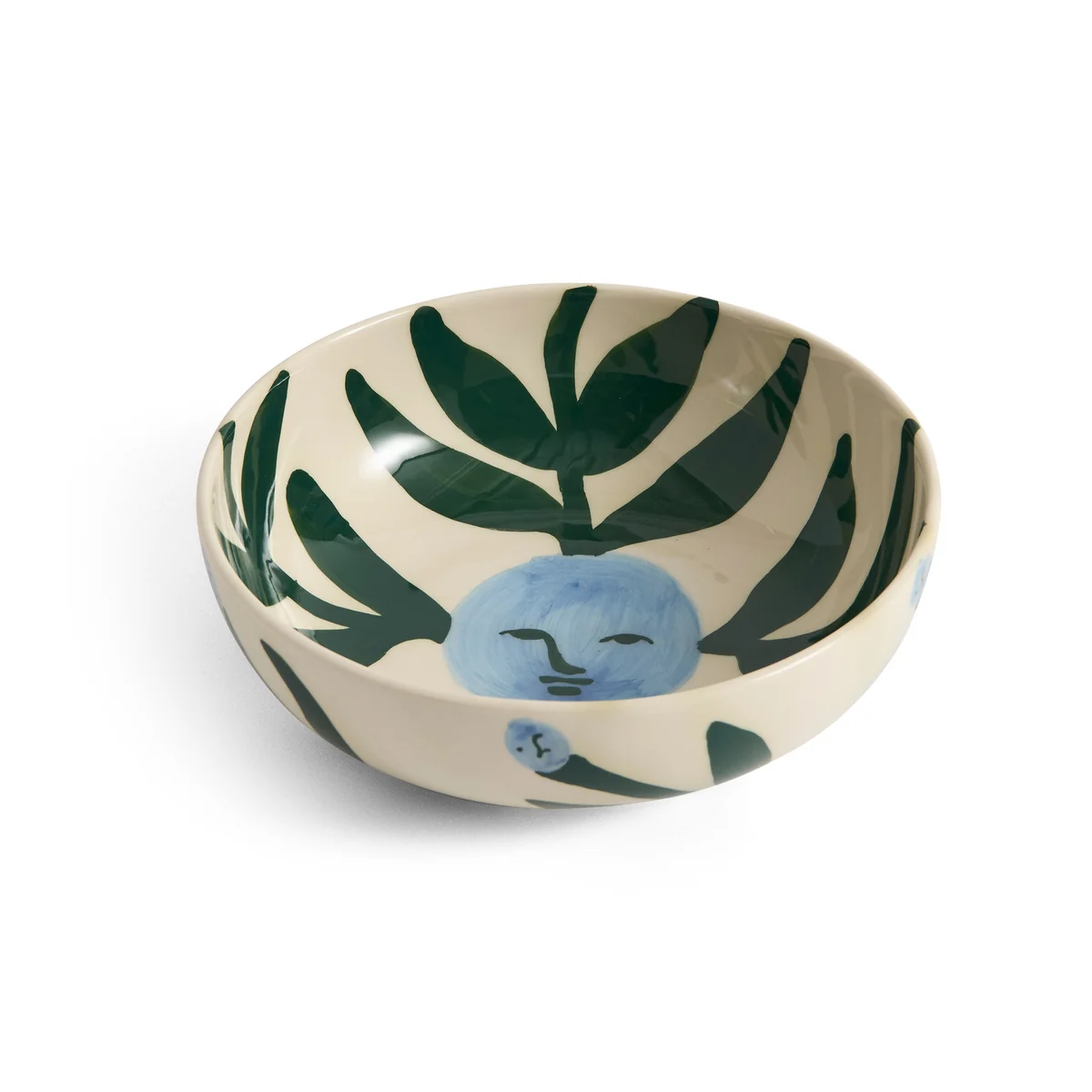 The bowl from the La Pittura series by HAY combines functional ceramic design with the lively visual language of artist Emma Kohlmann. Each bowl is individually hand-painted, giving it a unique expression. The colorful motifs, inspired by historical ceramics and Renaissance originals, make the bowl a special piece for everyday use or as a decorative object on the table, sideboard or wall.