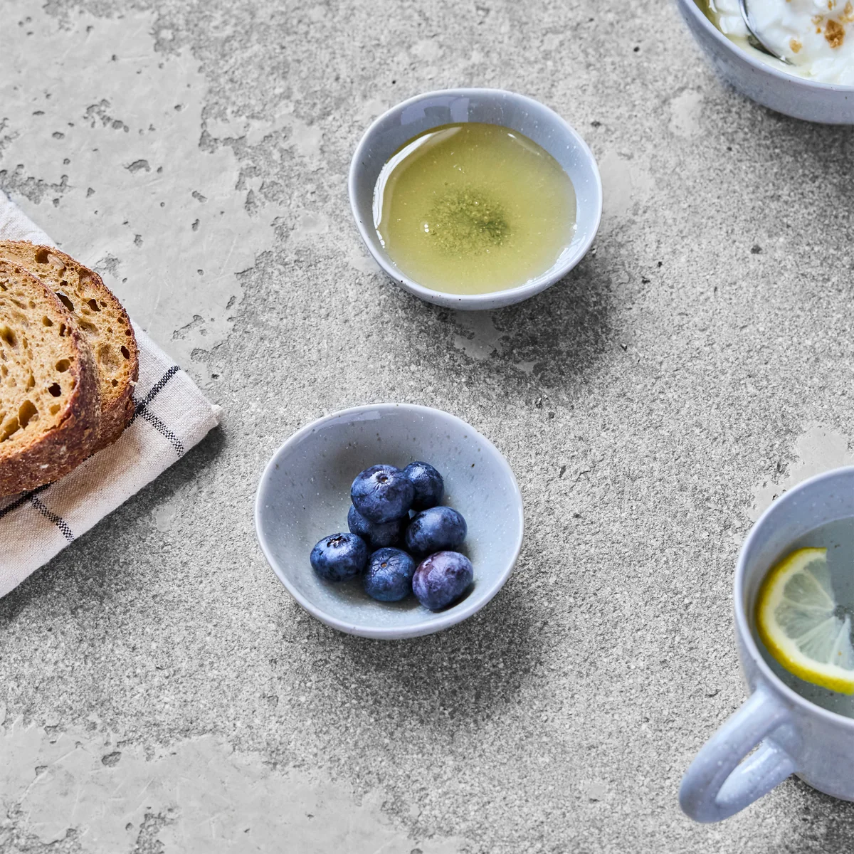 The Vida bowls from House Doctor bring individuality and warmth to any table setting. The set of 4 made of handmade stoneware impresses with its reactive glaze, which creates a unique play of colors in each bowl. The visible raw base emphasizes the craftsmanship and makes each piece unique. Whether for snacks, dips or small side dishes - the bowls are versatile and are suitable for both relaxed breakfasts and elegant dinners. Thanks to their harmonious design, they can be wonderfully combined with other tableware and open up numerous styling options.