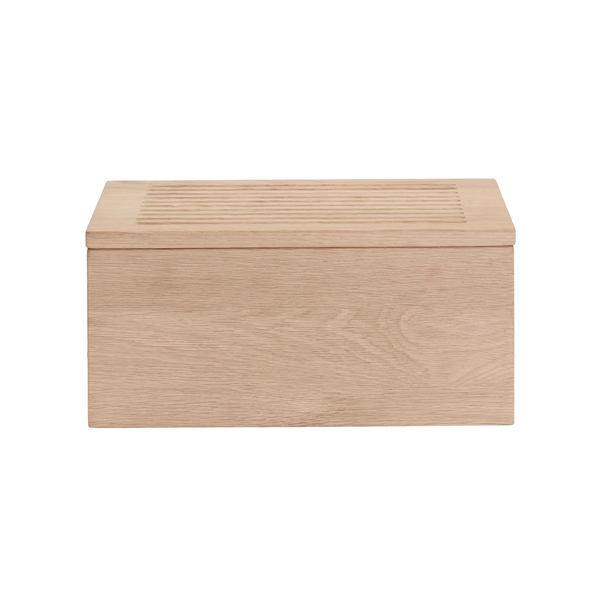 The lid of the box has decorative grooves and is ideal as a cutting and serving board for baked goods. The bread box was designed by Kira Usbeck.