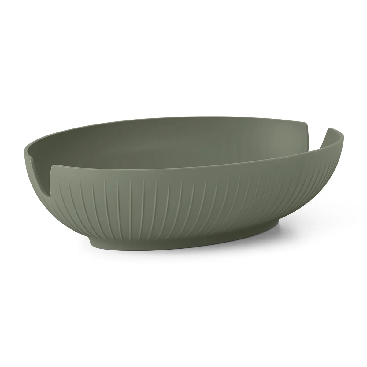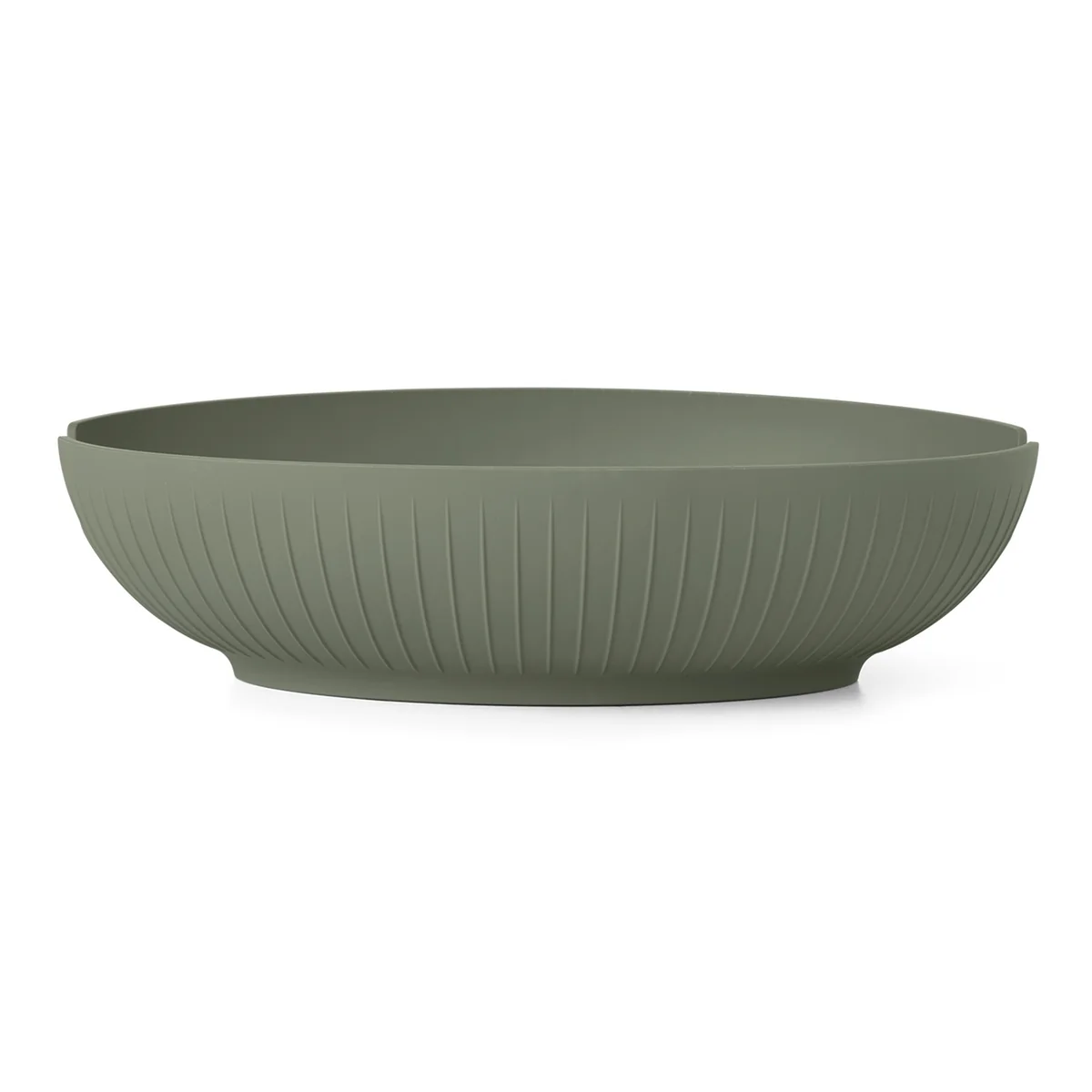 The Hammershøi bread basket by Kähler Design is perfect for the everyday breakfast table, as well as for barbecues or the common table. The bread basket bears the series' signature grooves that shape it into an elegant piece that is also supremely functional. With the incisions at both ends, the bread basket not only looks shapely, but also provides a place for the corpulent bread knife to rest. Both rolls and whole stone-baked bread can be served in the bread basket.