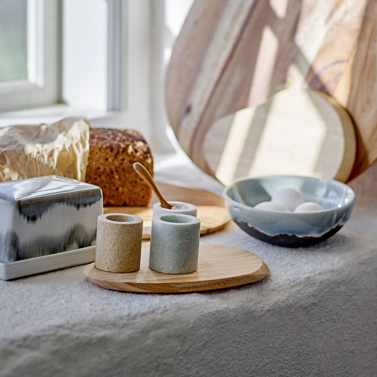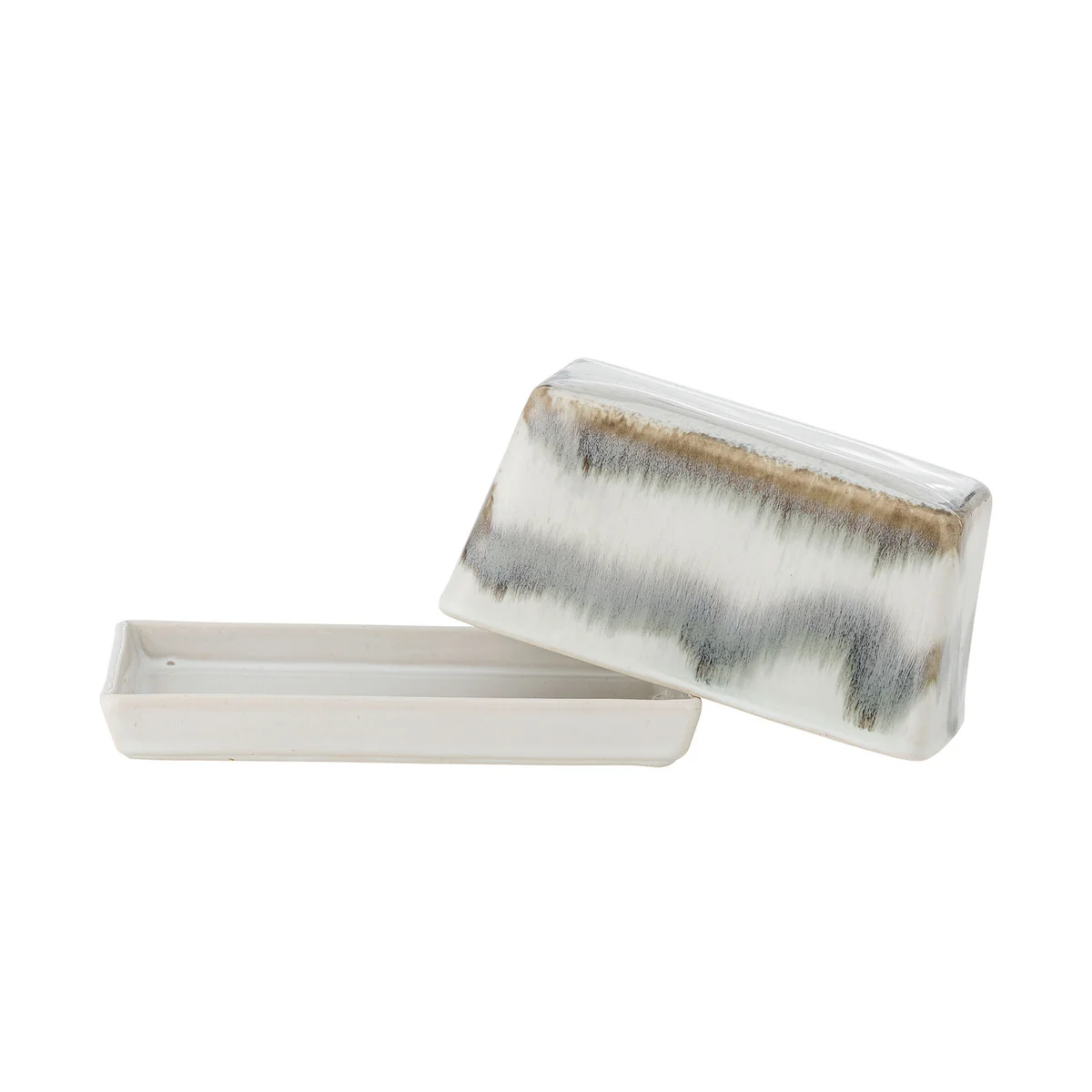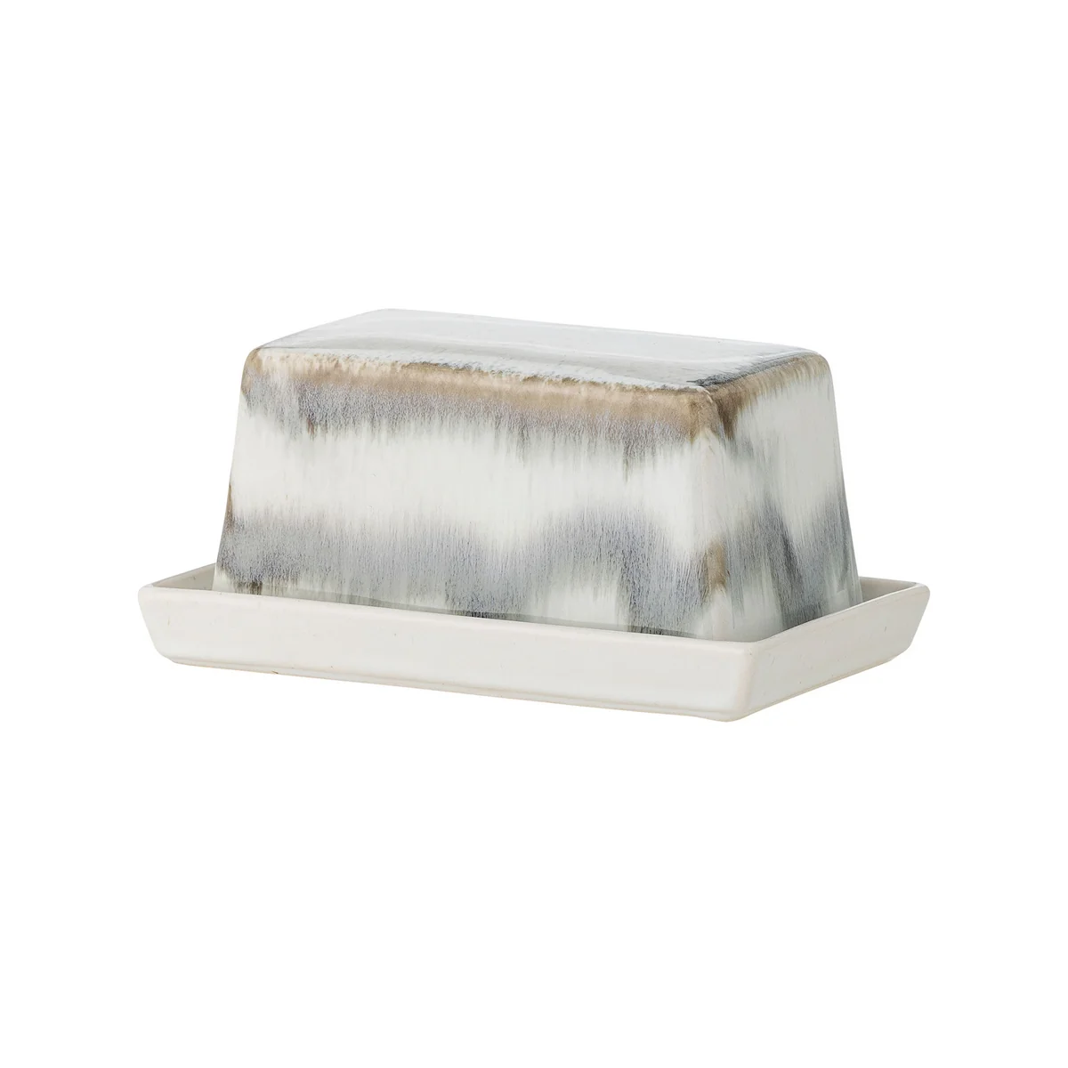 The Paula butter dish impresses with its lively design of wavy stripes in shades of gray and white. The handcrafted glaze gives each butter dish an individual look, so that no two pieces are the same. Ideal for storing butter or cheese in the fridge and as a stylish element on the dining table.