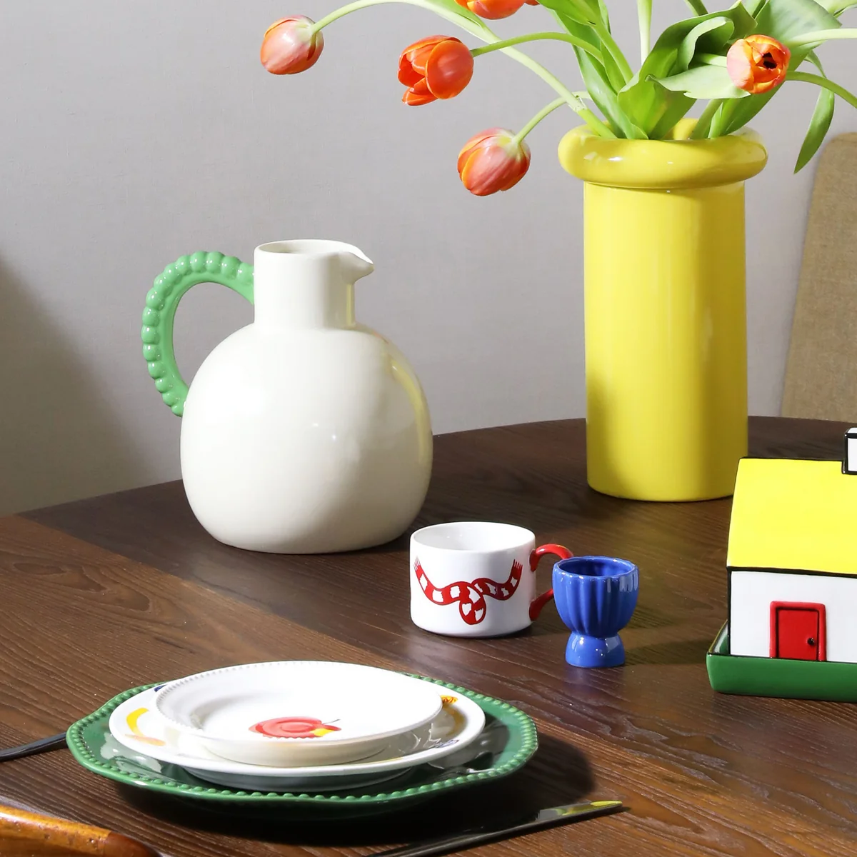 The Perle carafe from & klevering is an elegant highlight made of high-quality stoneware that adds a striking accent to any table. The contrasting Perle handle makes a strong statement and gives the carafe an unmistakable look. Combine it with the matching Perle plates to create a harmonious and stylish table arrangement on a hot summer evening - ideal for refreshing drinks and special moments.