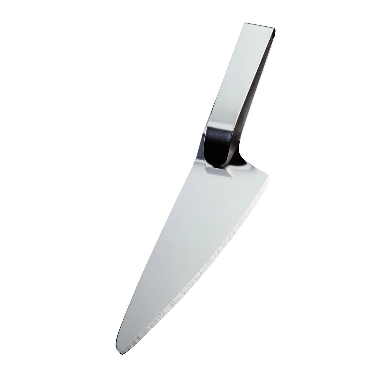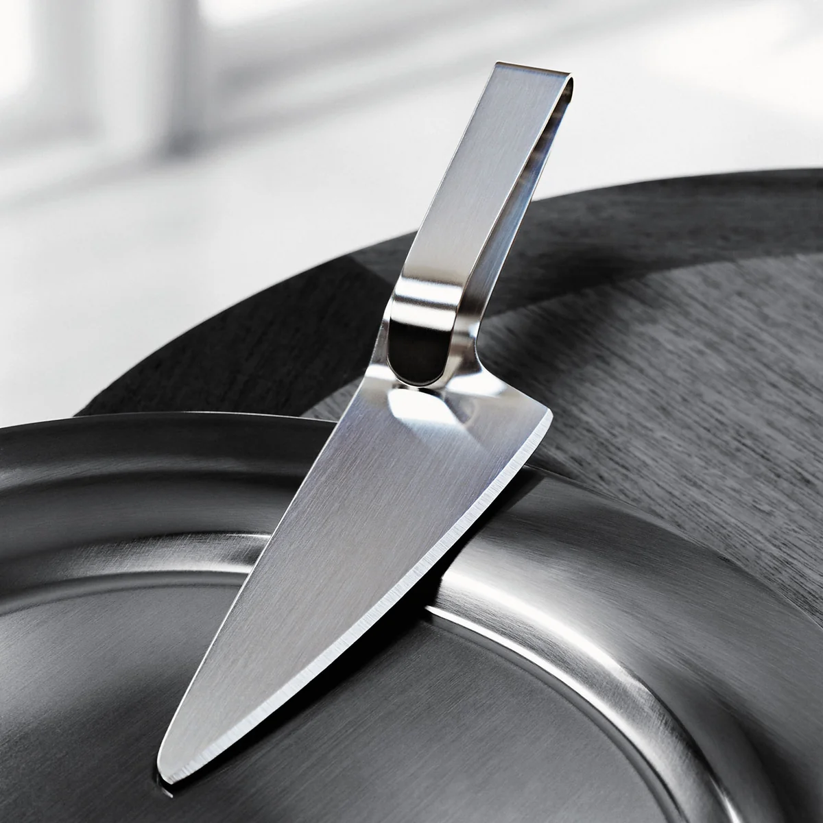 Erik Magnussen designed the cake knife/stool for Stelton . With the practical piece of cutlery, cake and pie pieces can be cut and served in one step.
