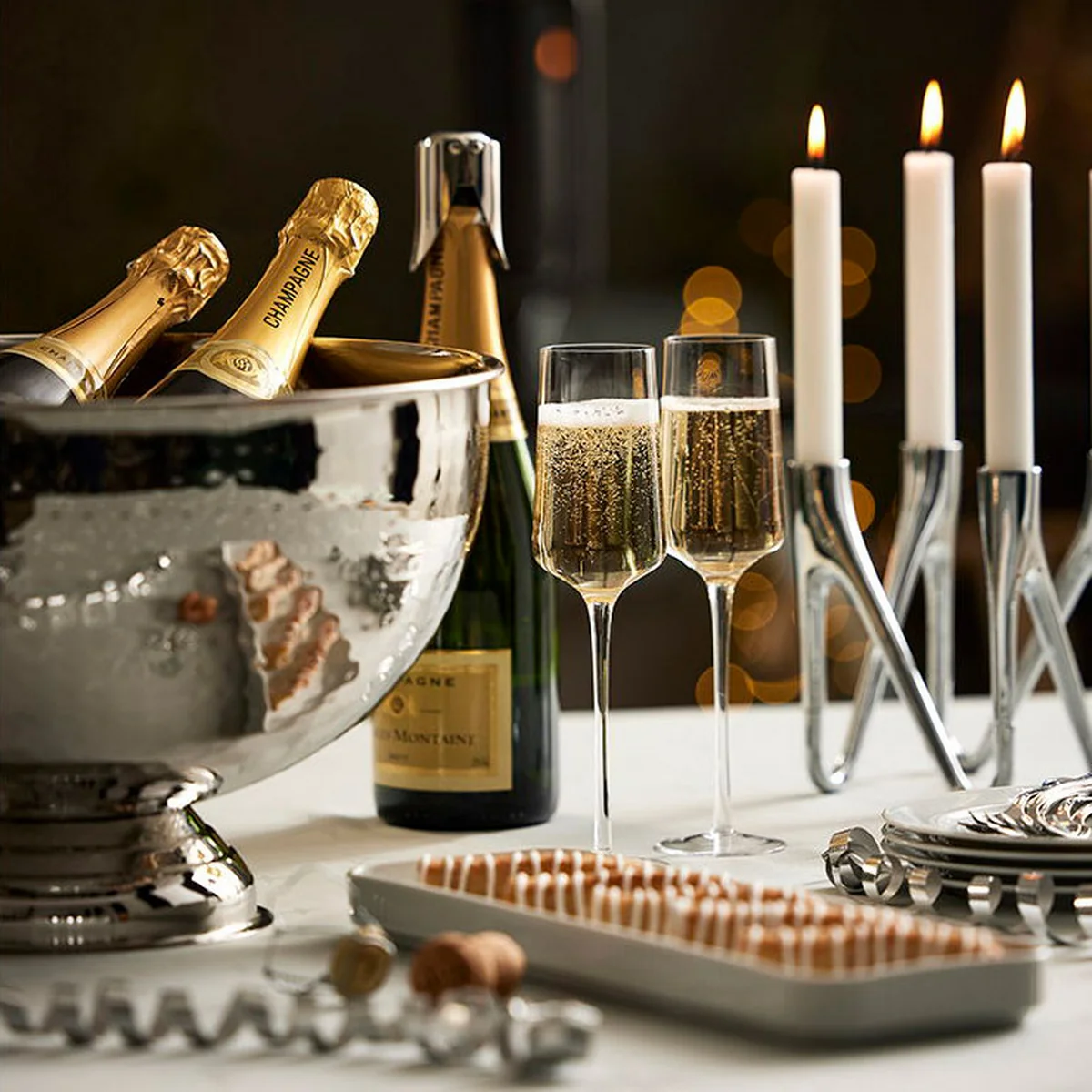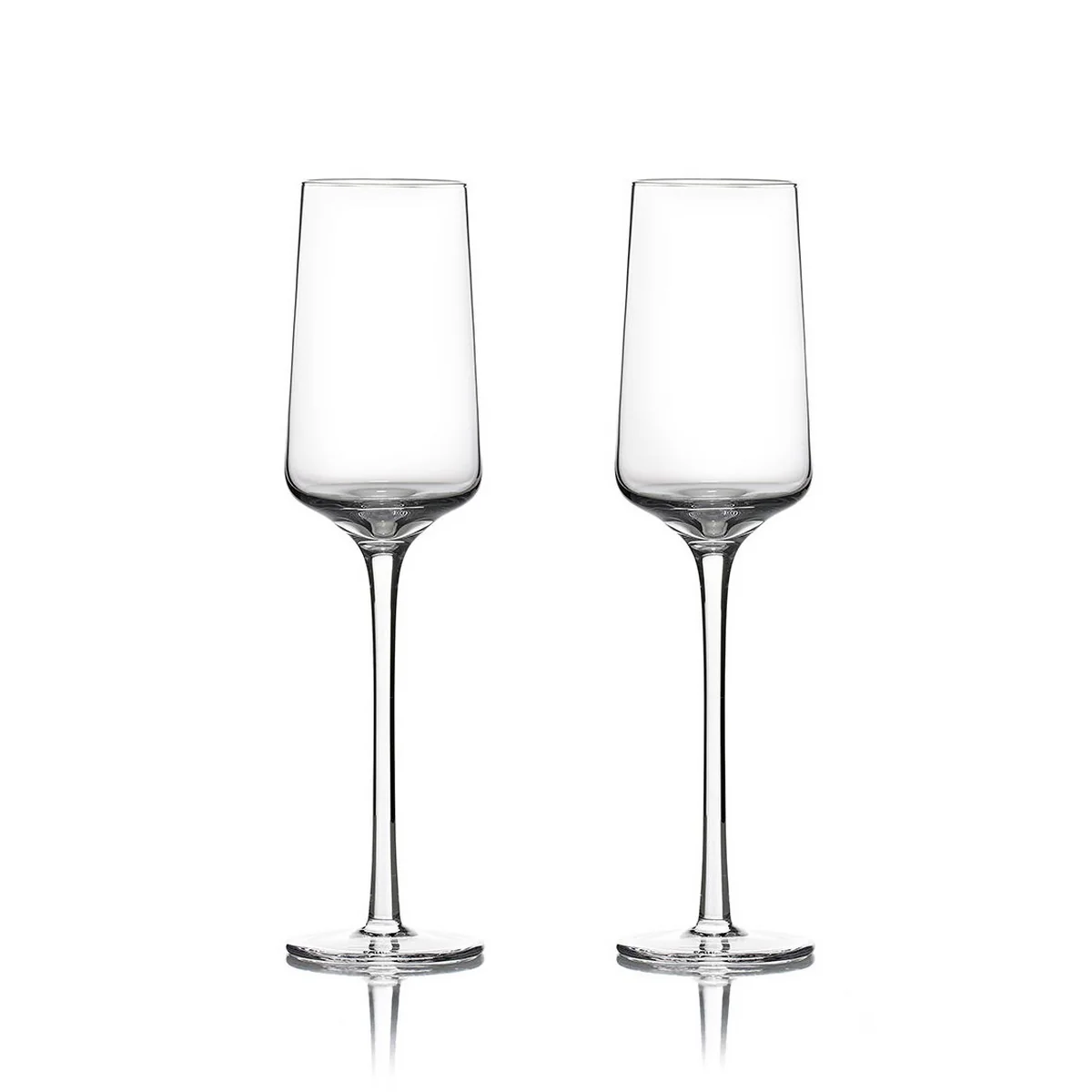 - Mouth-blown champagne glasses made from lead-free crystal glass