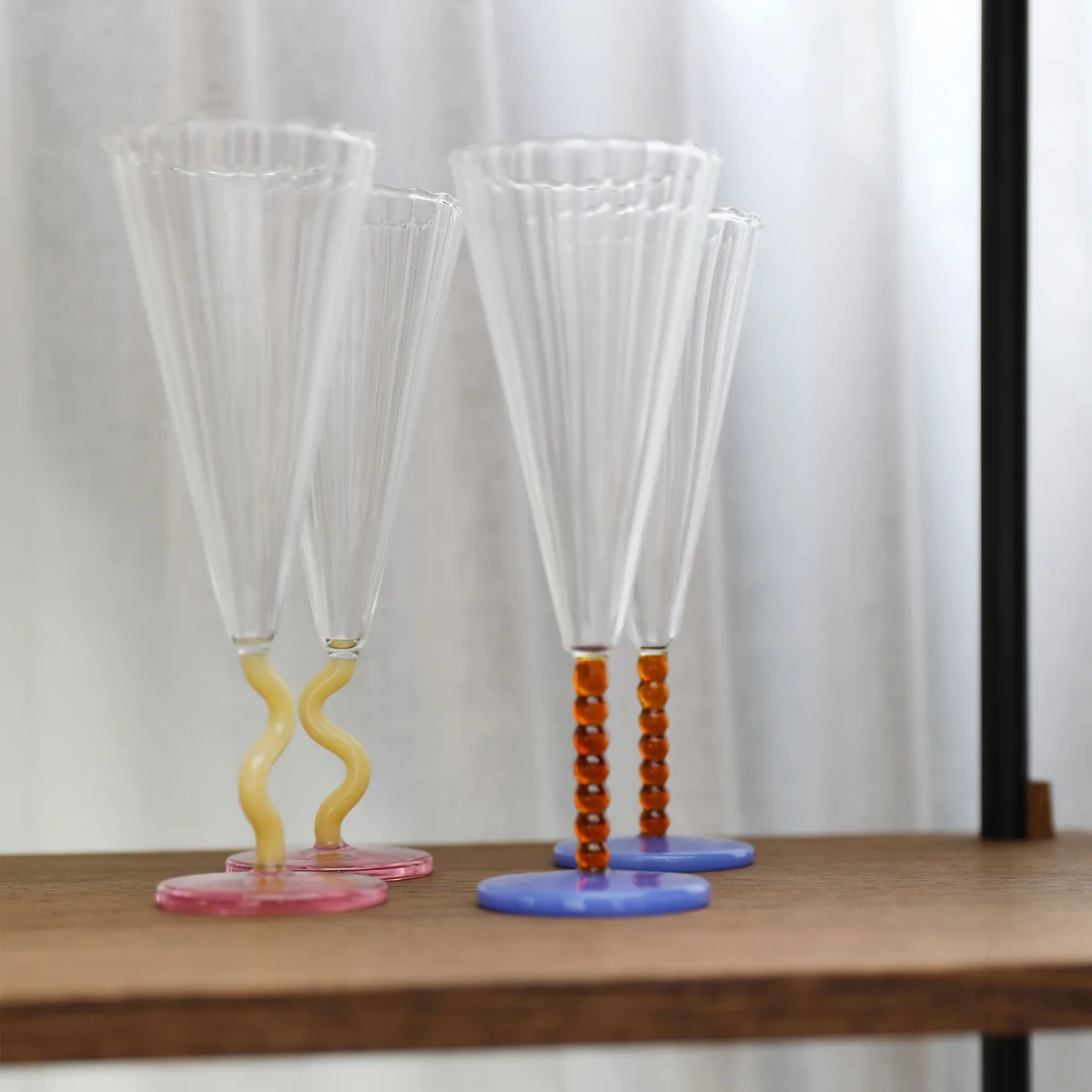 The set of two Coupe Curve cocktail glasses impresses with its curved shape and colored glass, which adds a special touch to any occasion. The subtle combination of delicate shape and soft color accents makes them a unique eye-catcher. Perfect for champagne, cocktails or water - just as ideal for desserts such as ice cream or fruit.