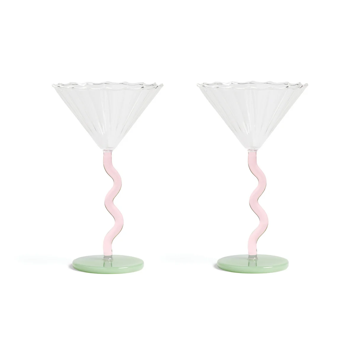 The set of two Coupe Curve cocktail glasses impresses with its curved shape and colored glass, which adds a special touch to any occasion. The subtle combination of delicate shape and soft color accents makes them a unique eye-catcher. Perfect for champagne, cocktails or water - just as ideal for desserts such as ice cream or fruit.