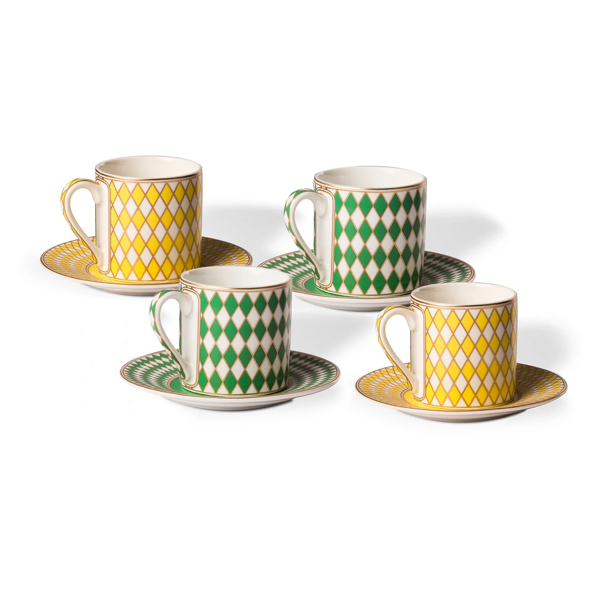 The Chess Espresso cup from Pols Potten is an absolute eye-catcher with its large diamond pattern and its noble details! In the set of 4 espresso cups are included in two different color variants with the matching saucer in each case.