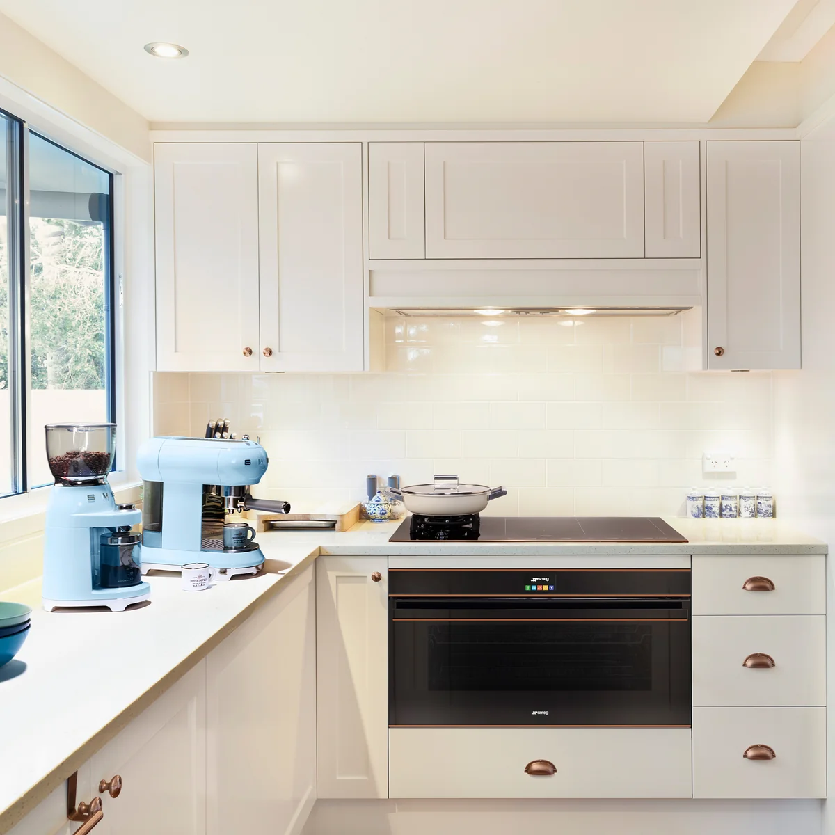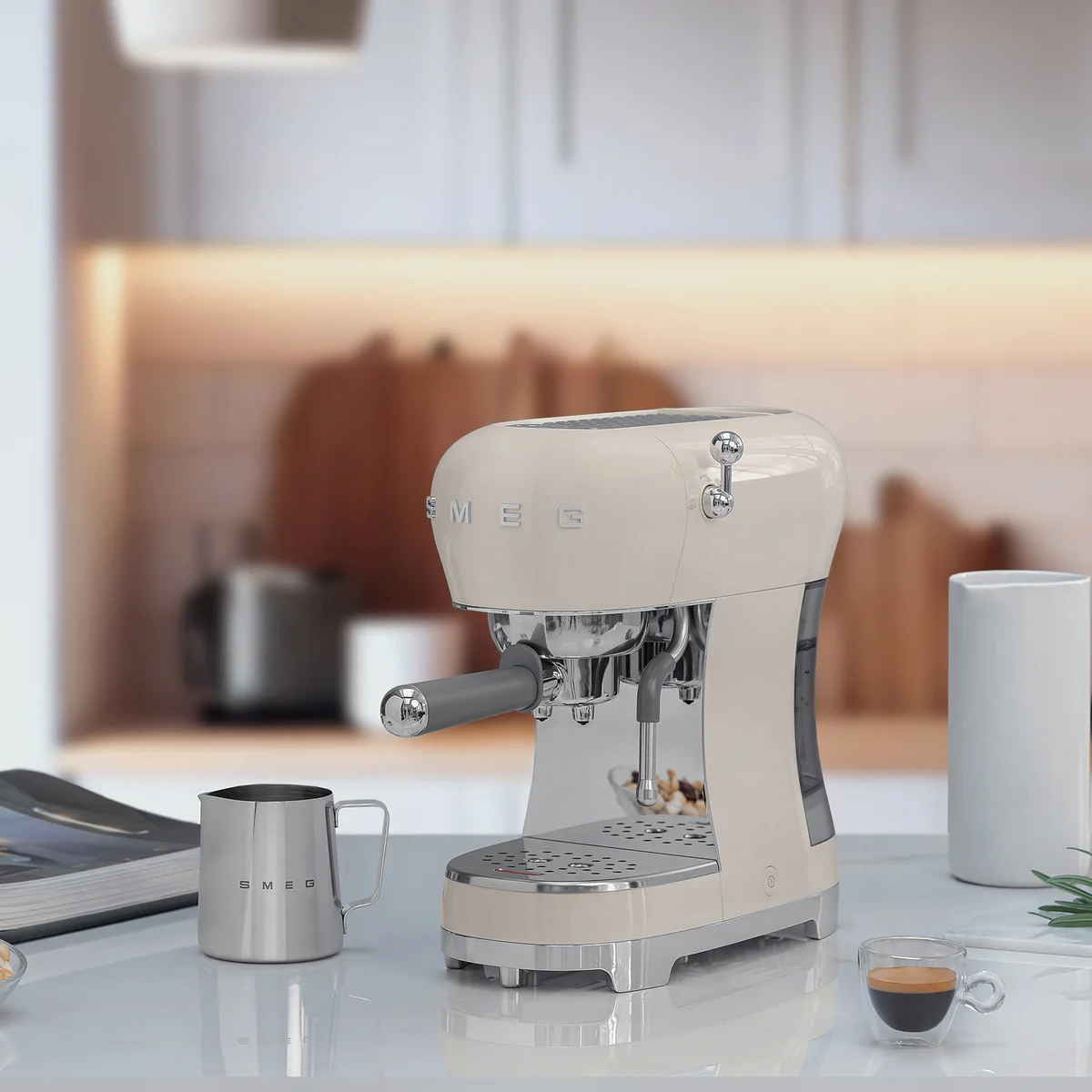 The ECF01 espresso coffee maker from Smeg makes it easy to bring Italian flair into your own four walls. Coffee prepared in the traditional Italian way can be enjoyed in style. Due to its round shapes, the design is reminiscent of the style of the 50s and makes for a great eye-catcher on the kitchen counter.
