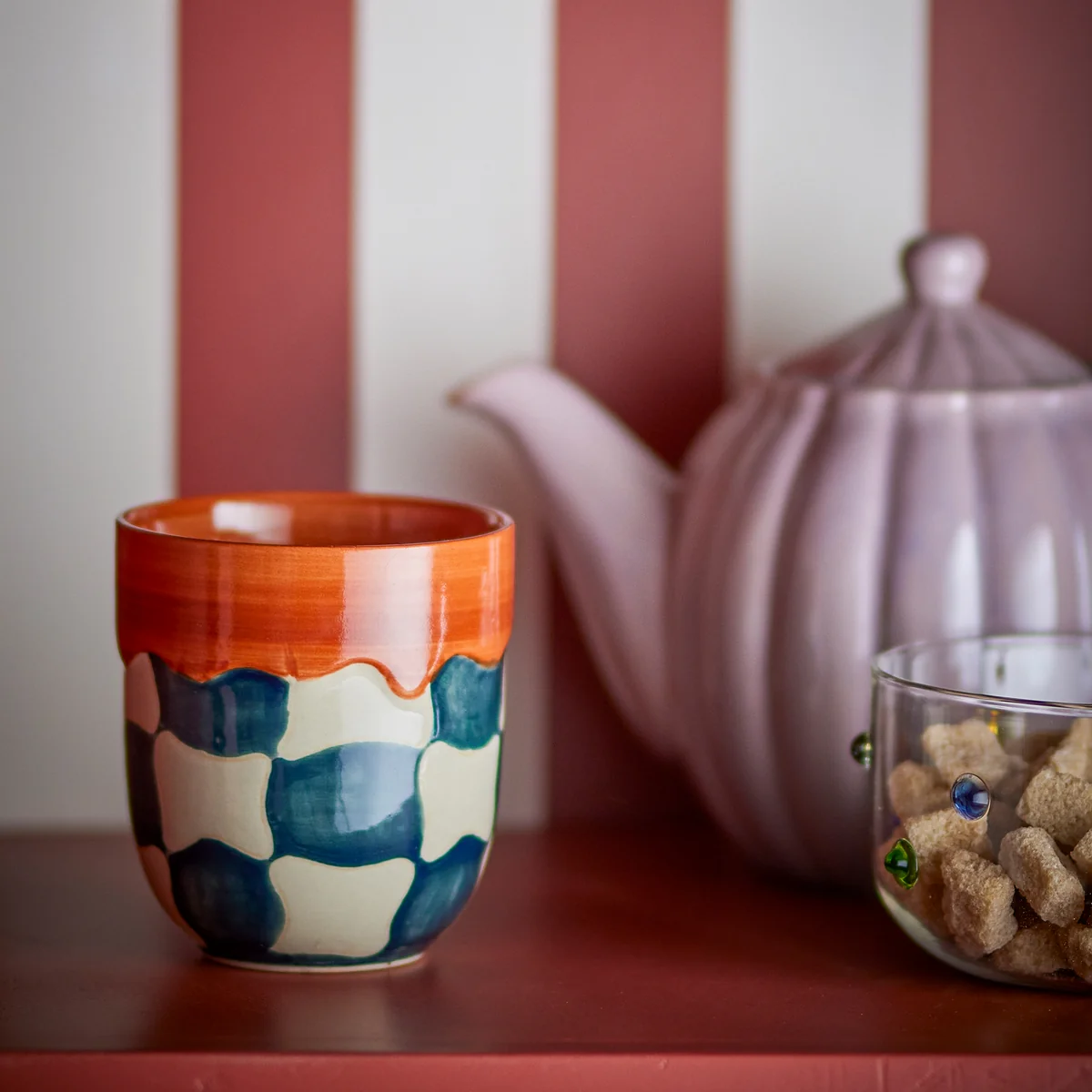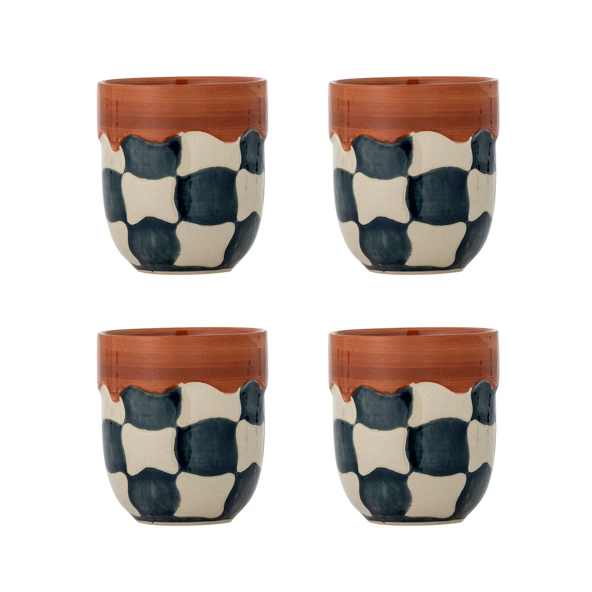 The Check mugs from Bloomingville combine Nordic design with handcrafted charm. The set of 4 is made of high-quality stoneware and features a graphic check pattern in blue and natural tones. Each mug is painted by hand - creating small variations that make each mug truly unique. The warm, reddish rim on the top adds a stylish accent and gives the set a special warmth.