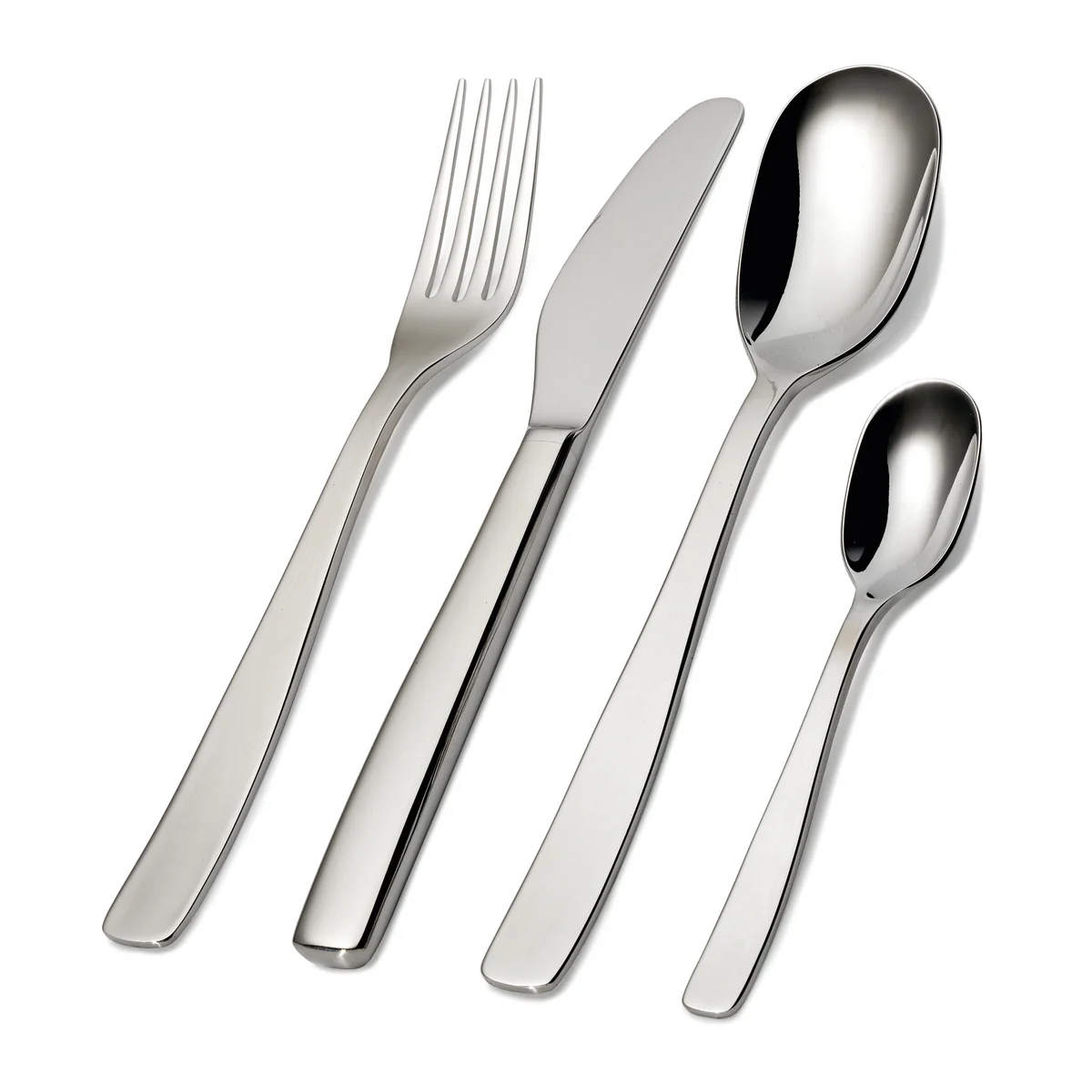 The KnifeForkSpoon cutlery by Alessi was designed by Jasper Morrison and is a cutlery set which is suitable for daily use as well as for special occasions. The 24-piece cutlery set consists of six table spoons, six table forks, six table knives and six coffee spoons made of polished stainless steel 18/ 10.