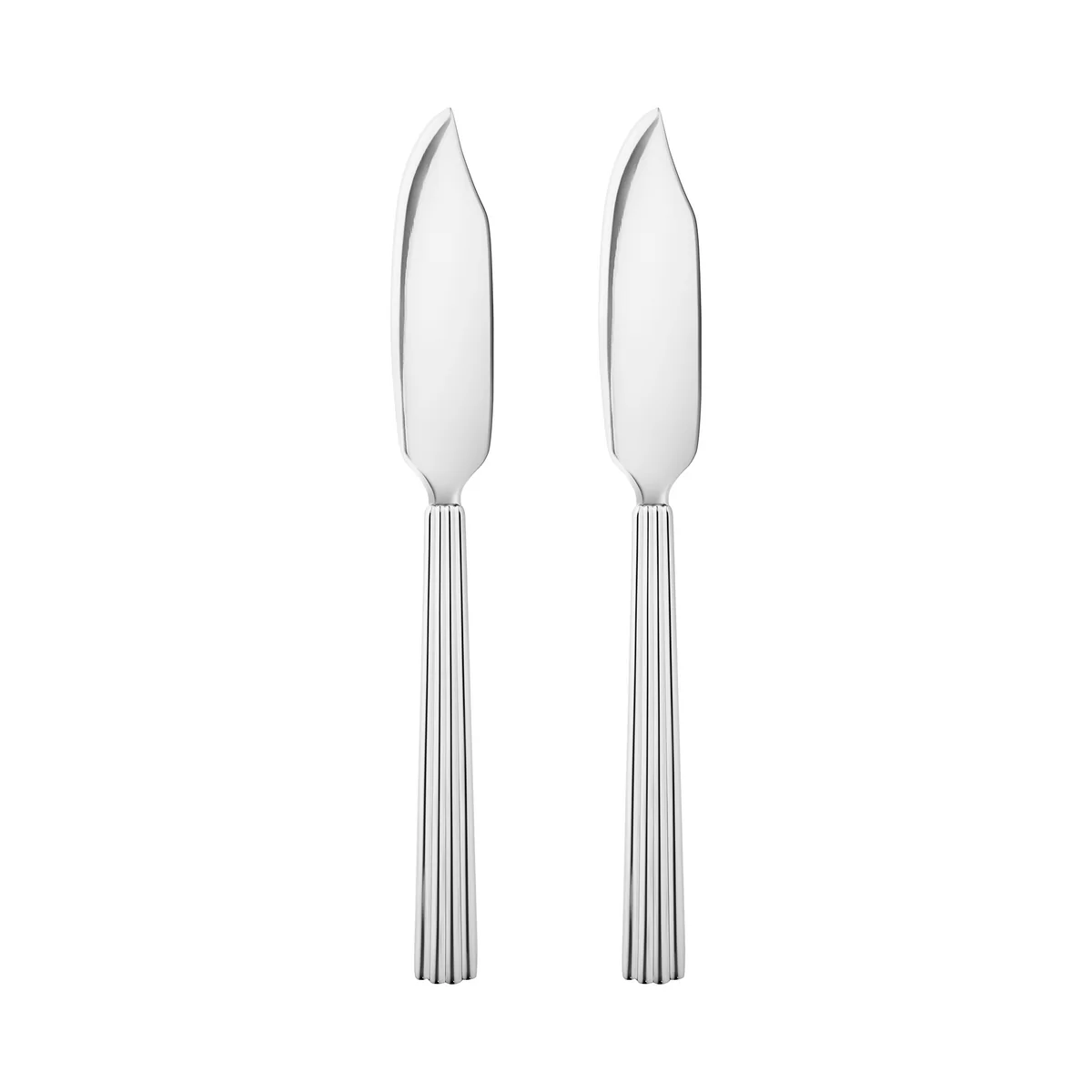 The Bernadotte Fish knife from Georg Jensen is a functional piece that takes its place in every kitchen. Made of stainless steel, it not only looks particularly classy, but also emphasizes the long grooves and unique shape. The Bernadotte Fish knife embodies the designer's signature style. The knife is available in a convenient set of 2.