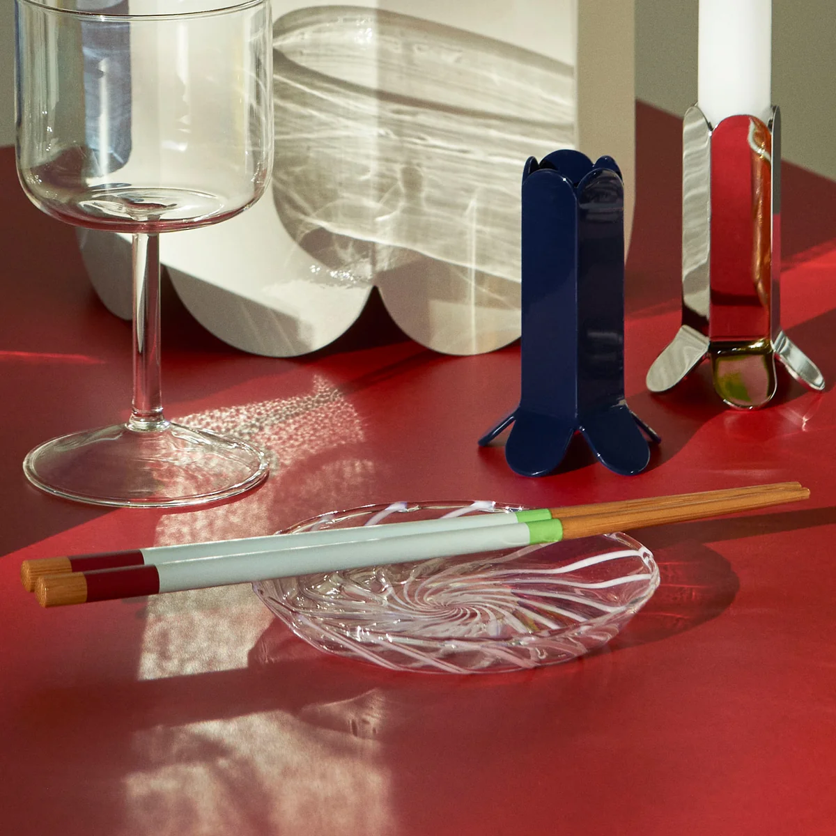 This form of cutlery has been used in China for over 3500 years. Buddhist priests and missionaries brought this eating technique to Korea and Japan and it quickly spread internationally. The designers Scholten & Baijings take the material of the traditional chopsticks and crown them with a modern color component.